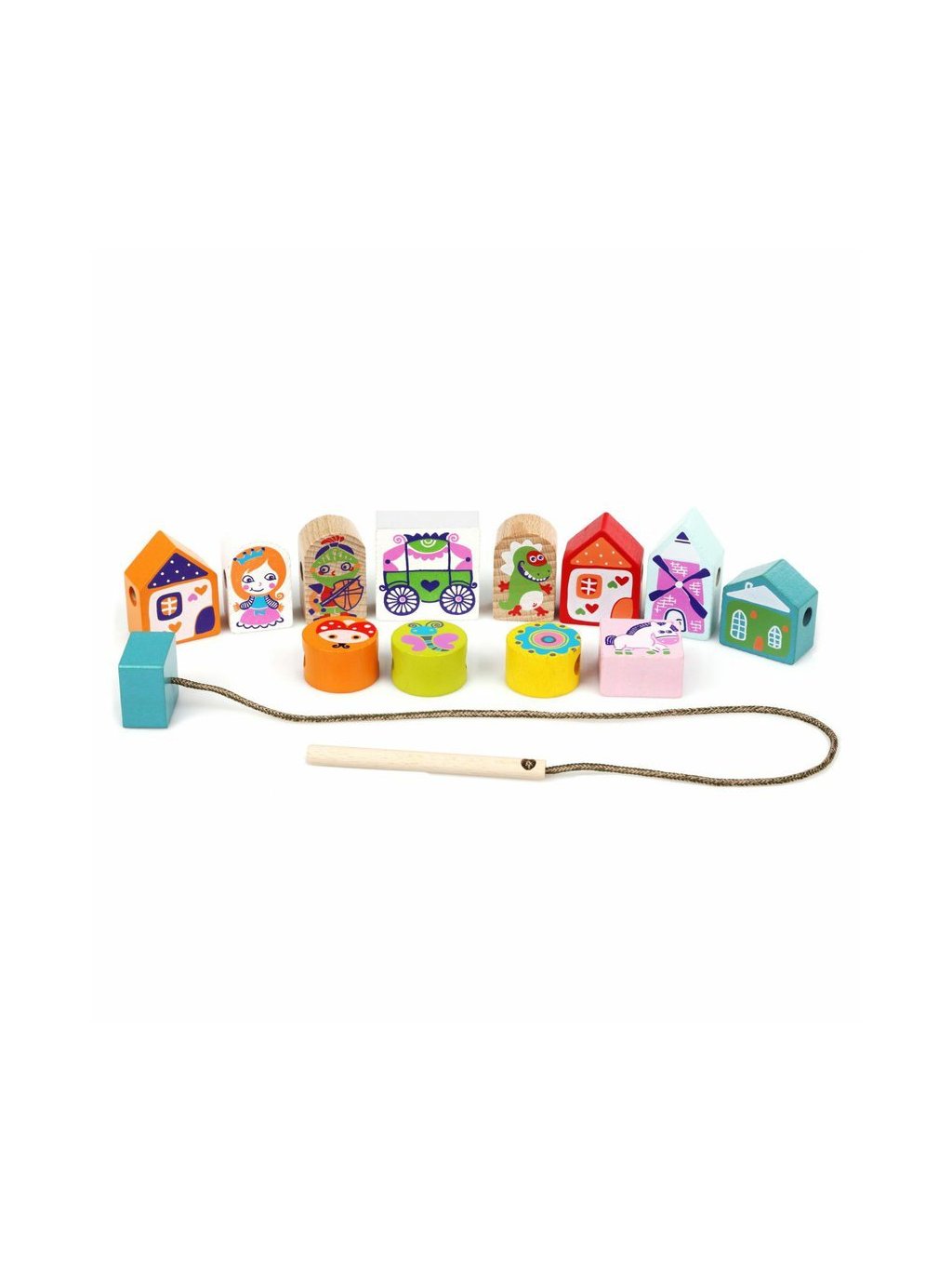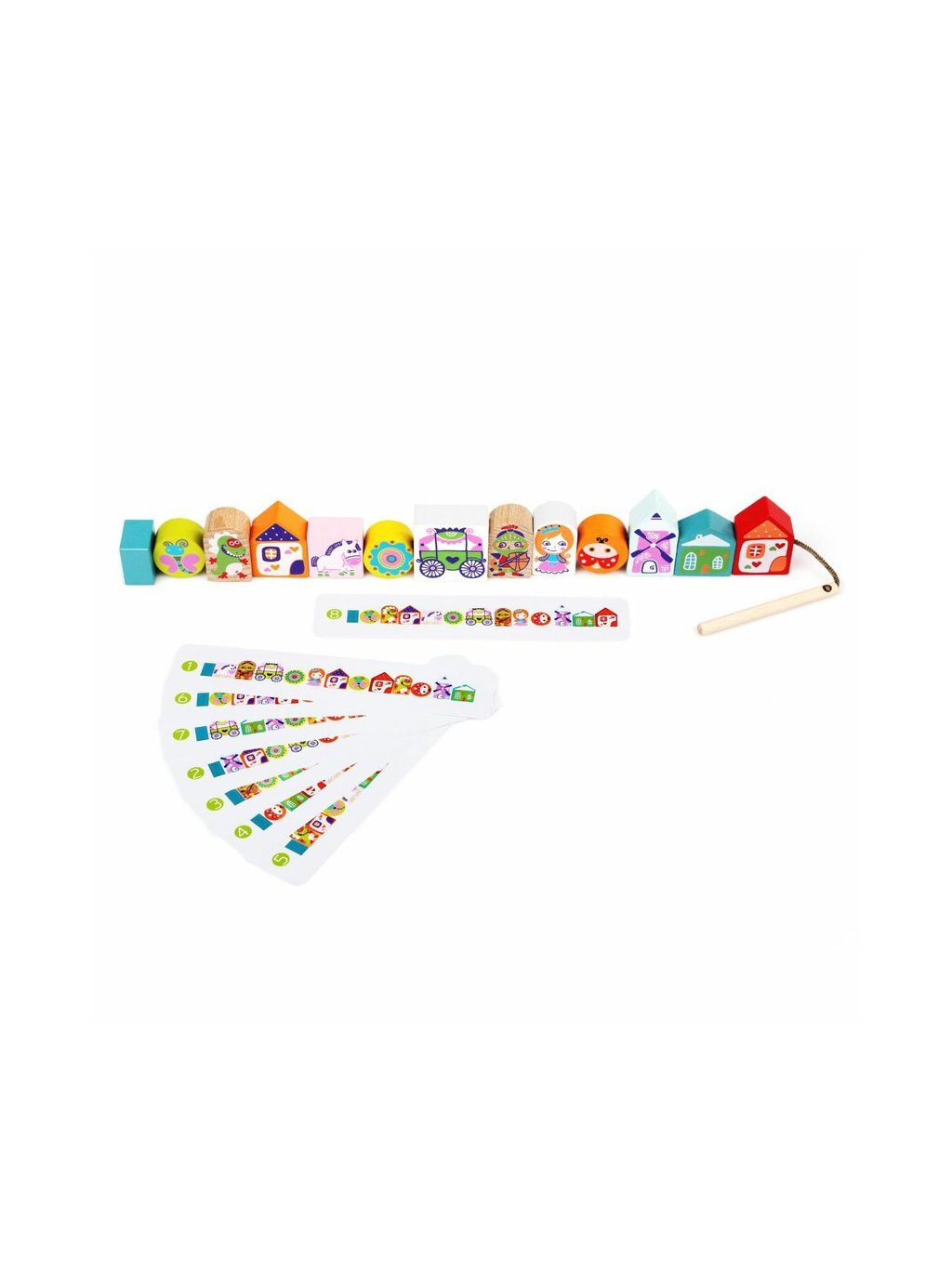 CUBIKA je nová značka dřevěných hraček vyrobených pouze z ekologicky pěstovaného dřeva s velmi precizním opracováním a líbivým designem. Navlékací pohádka je ideální hrou pro procvičení jemné motoriky, trpělivosti a paměti. Sada nabízí 12 dřevěných navlékacích prvků s pohádkovou tematikou, jednu tkaničku s dřevěným kolíčkem na prostrkování na jedné straně a zarážkou na druhé straně a 8 předloh s různě seřazenými tematickými prvky, podle kterých děti jednotlivé dílky navlékají. Zdatnější hráči si pak mohou předlohu jen prohlédnout a zkusit navlékat zpaměti a vytvářet si tak svůj vlatní pohádkový příběh. Sortiment hraček značky CUBIKA pomáhá dětem rozvíjet především senzomotorické schopnosti a dovednosti, logické myšlení, kreativitu, představivost a různé poznávací znalosti. Hračky jsou vyrobeny z nejkvalitnějšího javoru a buku a k barvení se používají též vysoce kvalitní barvy na vodní bázi, které jsou naprosto bezpečné pro děti a nemají žádný zápach. Všechny výrobky této značky mají německý certifikát TÜV a jsou vyrobeny dle evropské normy pro bezpečnost hraček EN 71. Nevhodné pro děti do 3 let. Vyrobeno v Evropě.
