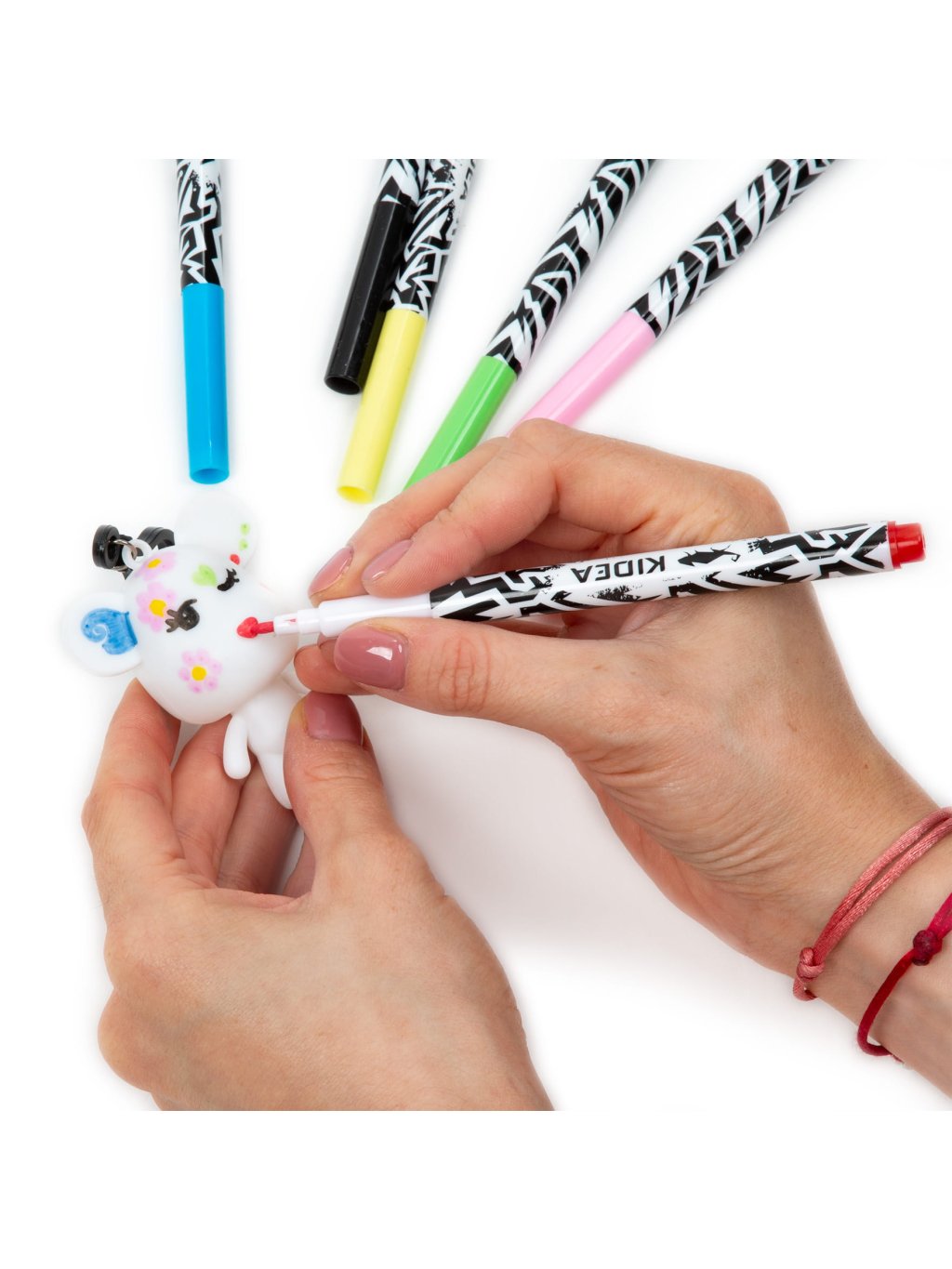 Udělej si sám klíčenka s akrylovými fixy v šesti barvách: růžová, červená, žlutá, zelená, modrá a černá.