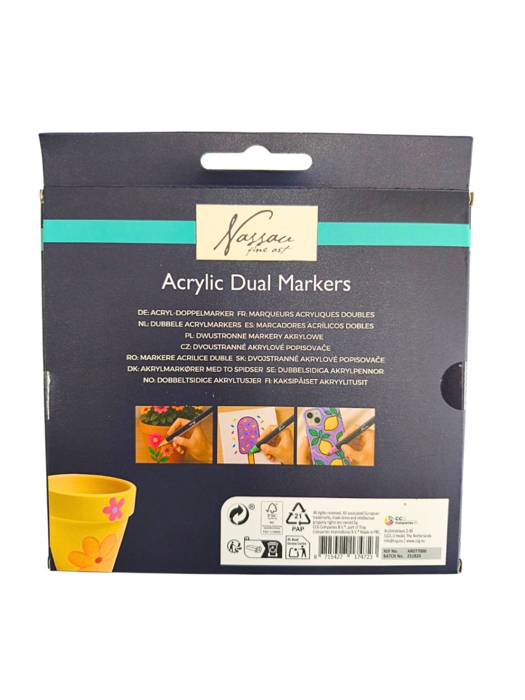 Akrylový inkoust poskytuje syté a krycí barvy. Popisovače jsou vhodné pro použití na různé povrchy, například papír, karton, dřevo, kámen, keramiku nebo plátno.