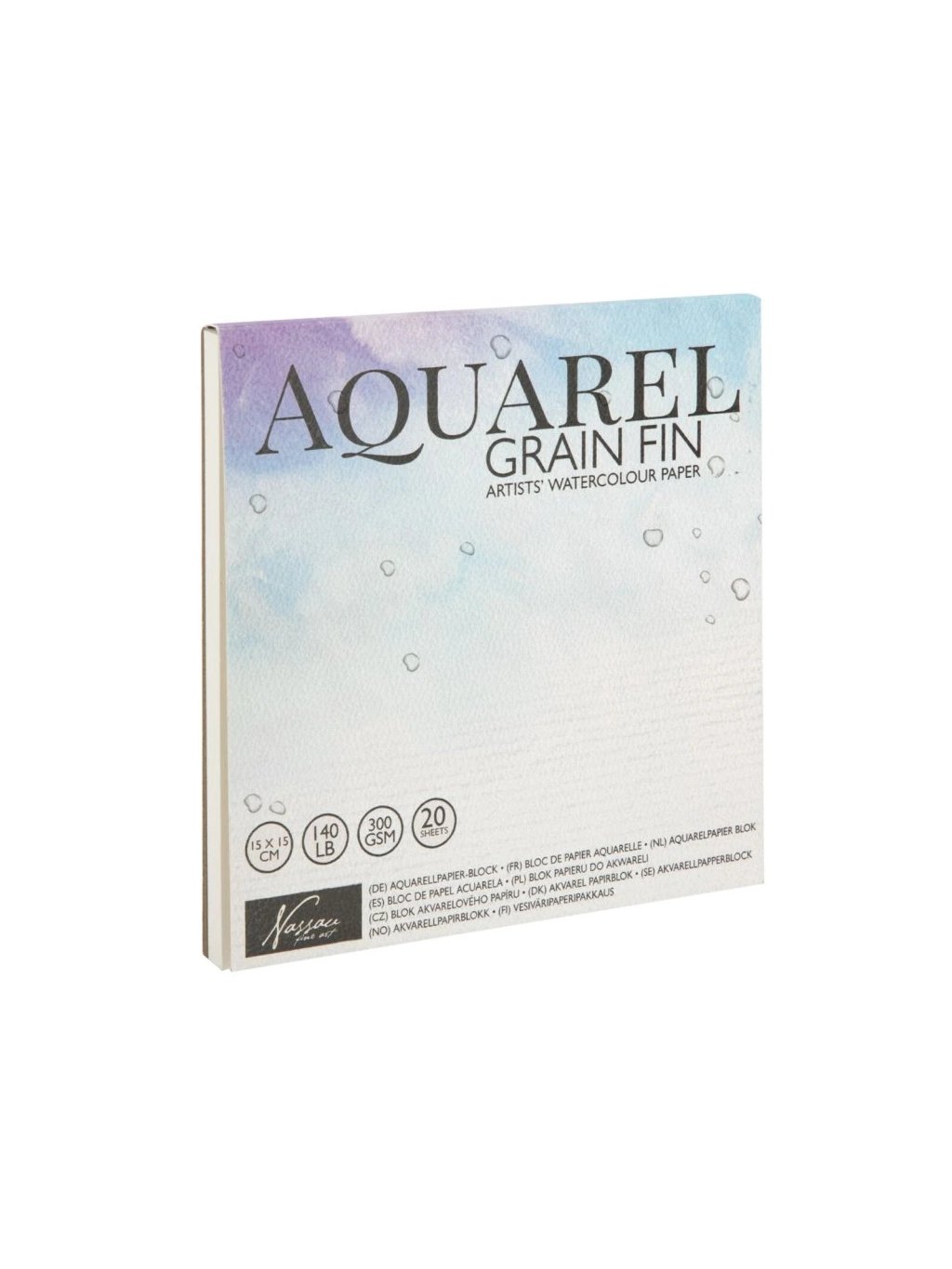 Kvalitní akvarelový papír 15 × 15 cm s jemnou strukturou Grain Fin. 20 listů, 300 g/m². Ideální pro akvarel a detailní malbu.