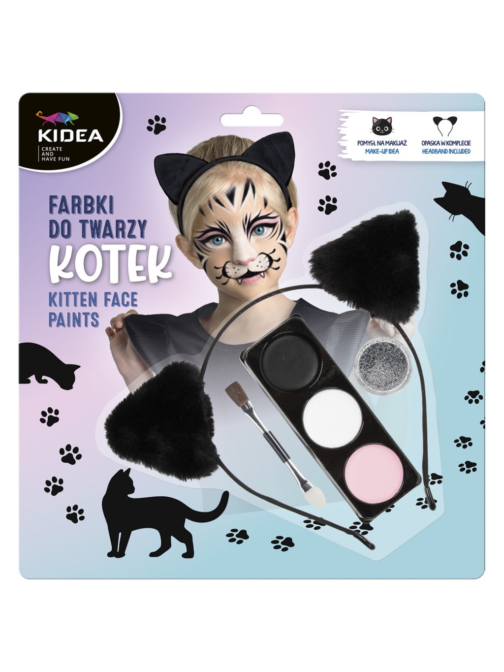 Sada vám pomůže proměnit se v kotě ve čtyřech jednoduchých krocích, které najdete na obalu, nebo si můžete pohrát s barvami prostřednictvím originálního stylingu. Tento jedinečný make-up se bude hodit na maškarní párty, festivaly nebo Halloween. Barvy velmi dobře kryjí, snadno se roztírají a jsou bezpečné pro pokožku, což potvrdily i příslušné laboratorní testy.