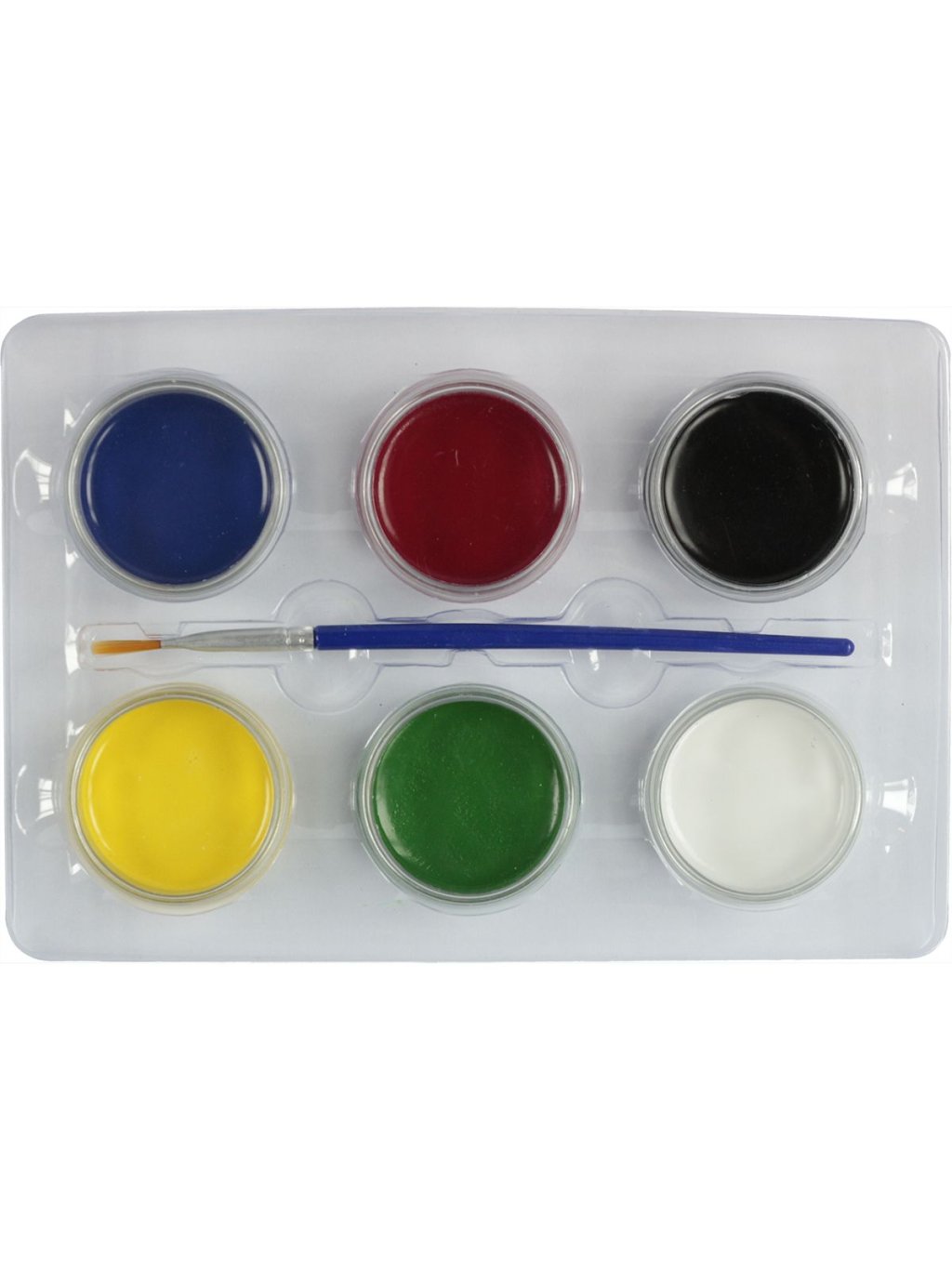 - sada obsahuje 6 barev: tmavě modrá, červená, černá, žlutá, zelená, bílá a štětec.