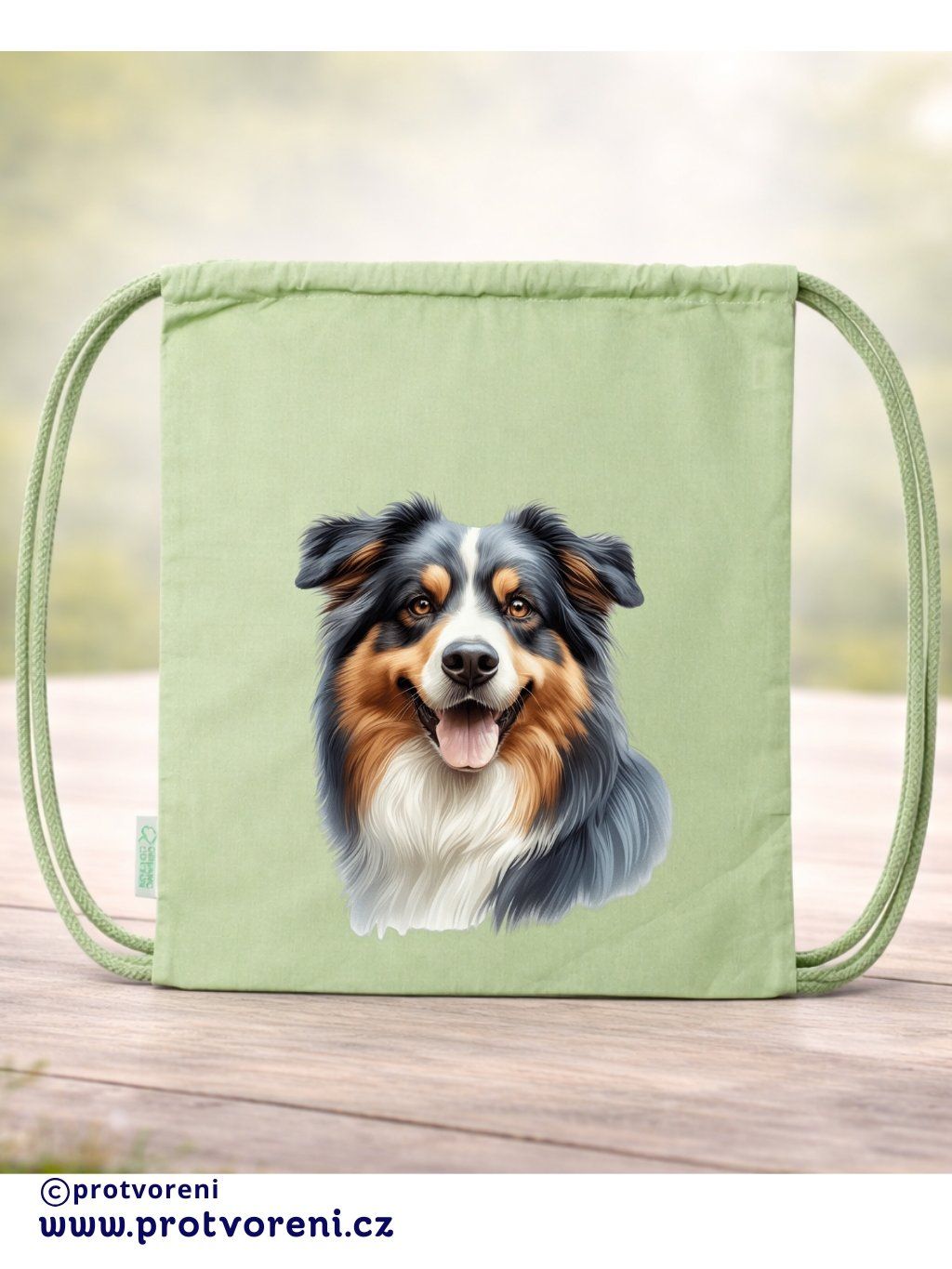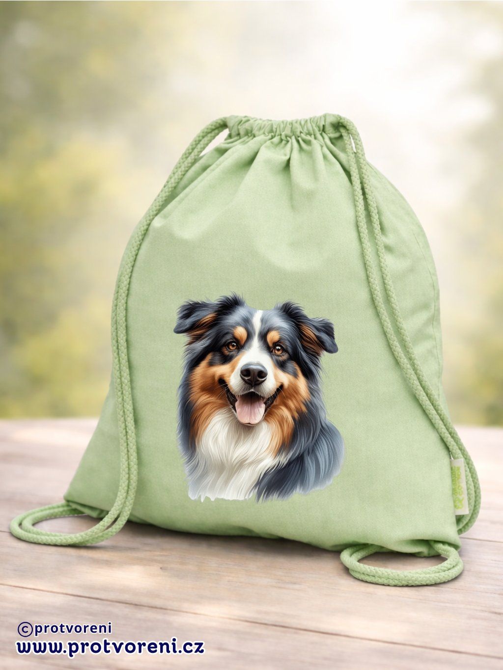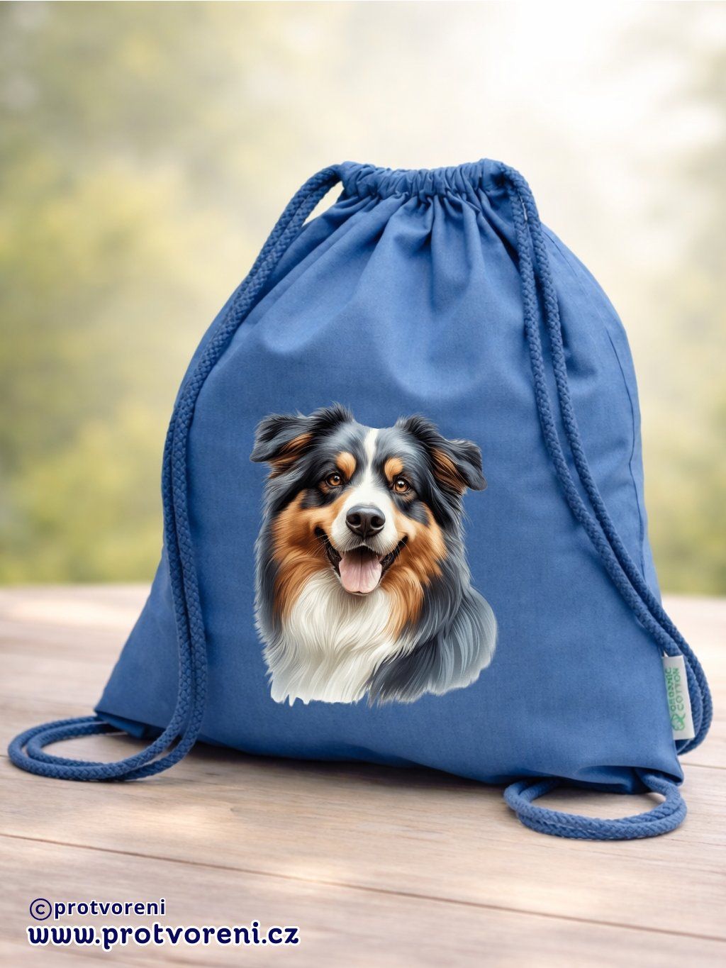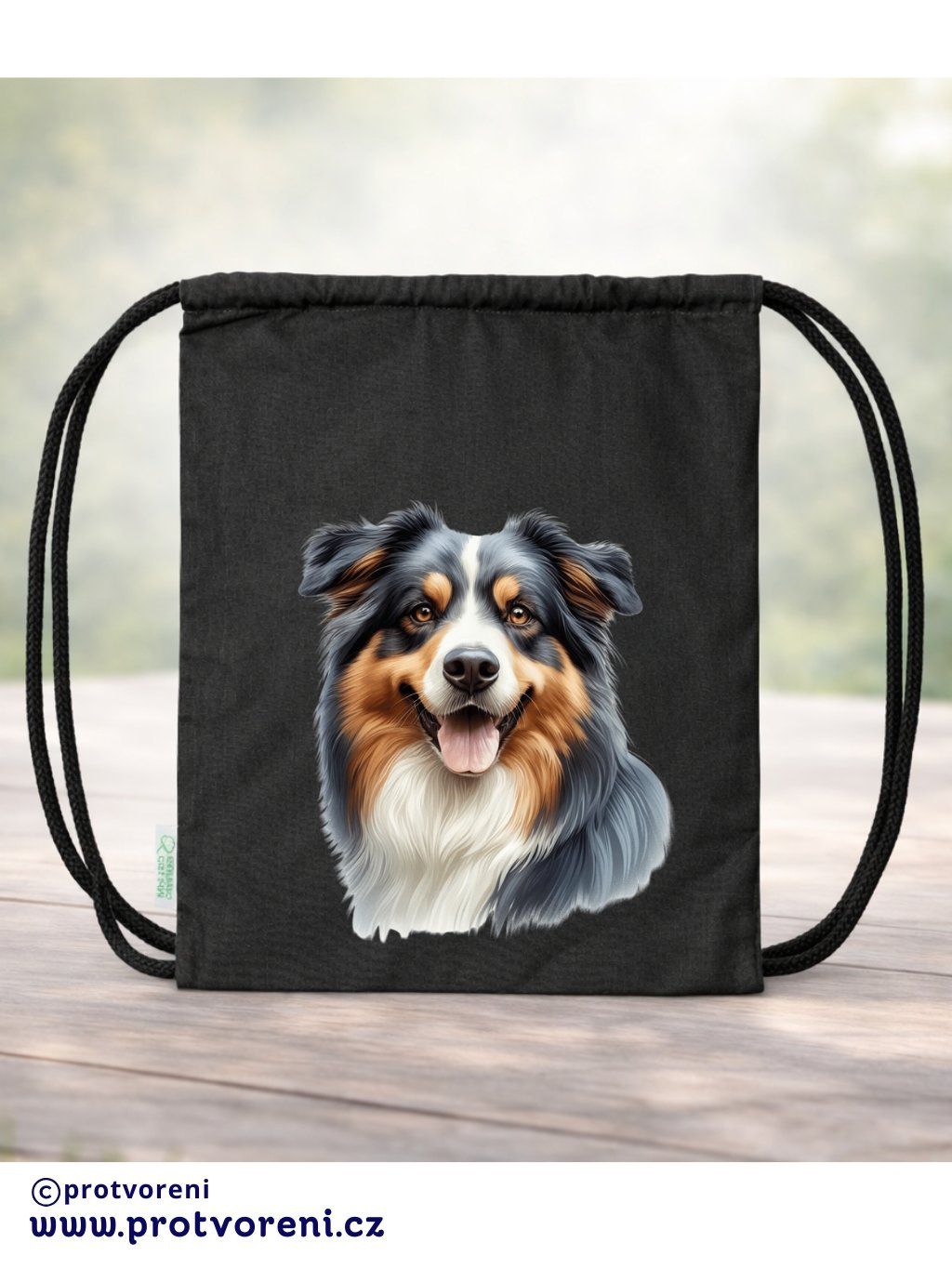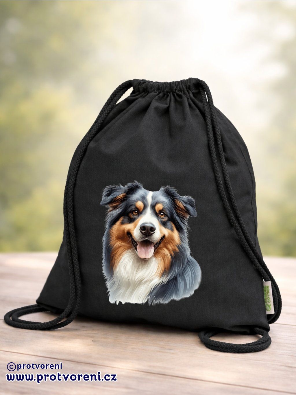Batoh - vak na záda s potiskem, AUSTRASLKÝ OVČÁK - BLACK TRI, 37x41cm, 1 kus