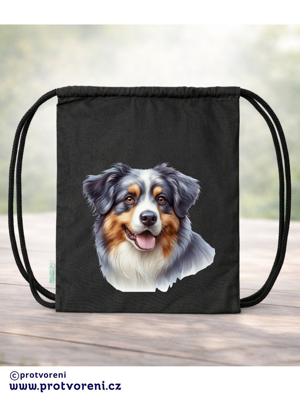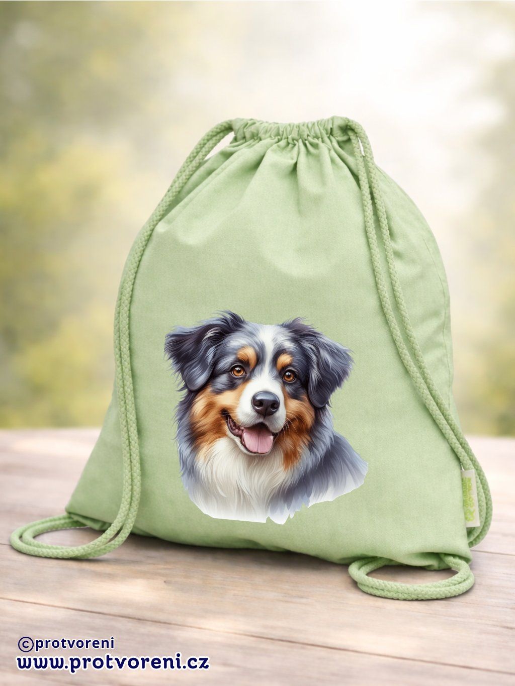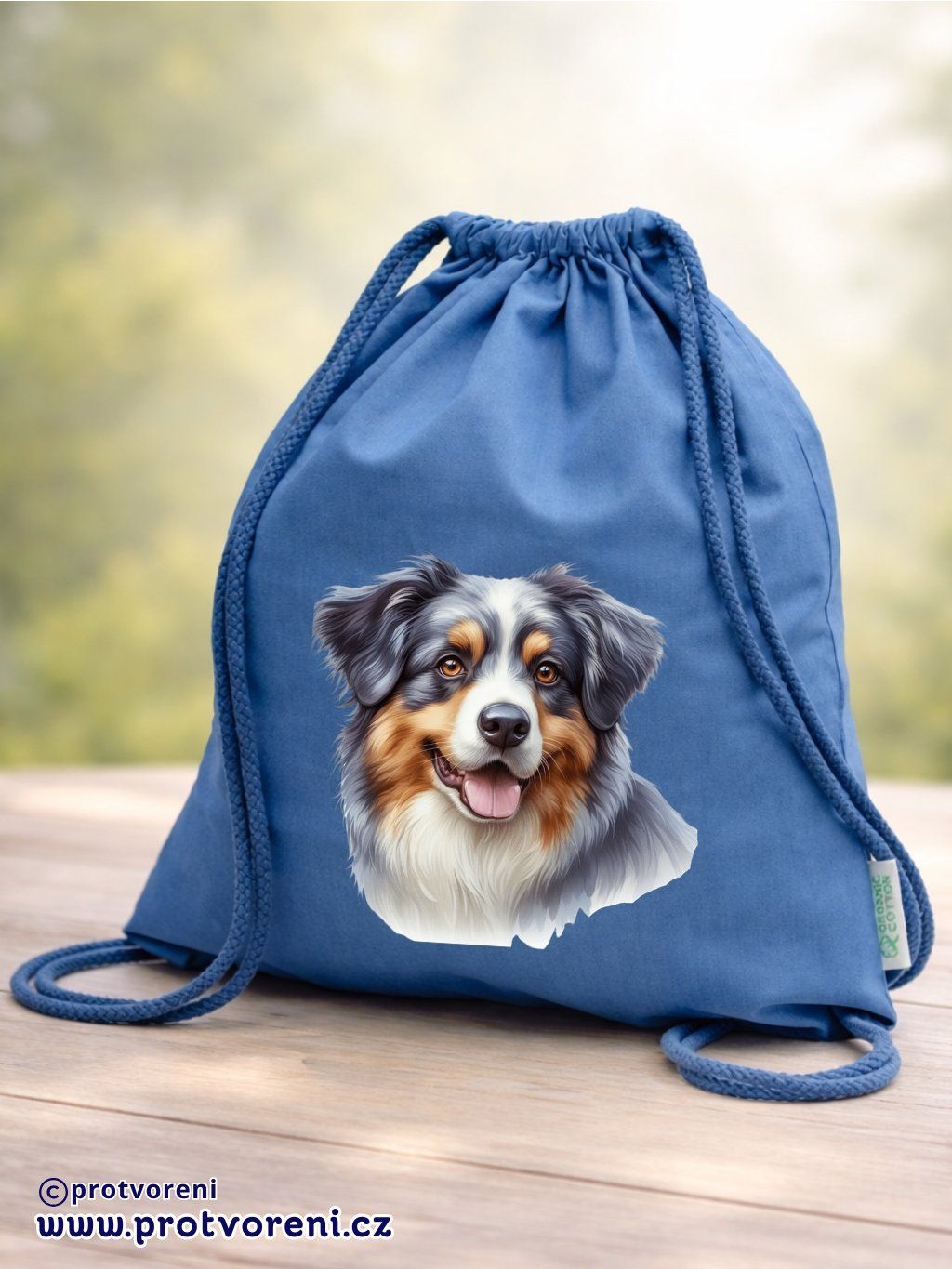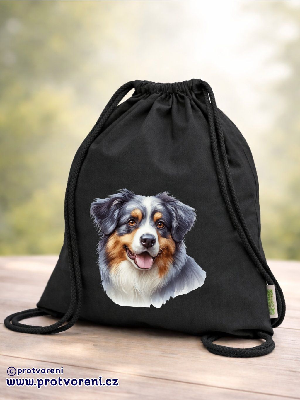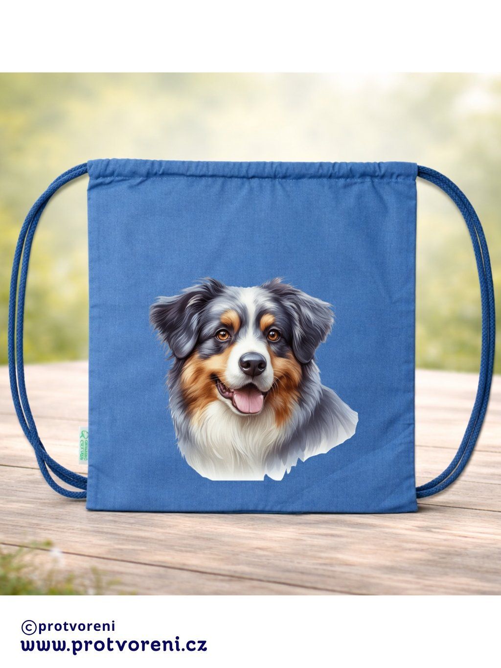 Batoh - vak na záda s potiskem, AUSTRASLKÝ OVČÁK - BLUE MERLE, 37x41cm, 1 kus