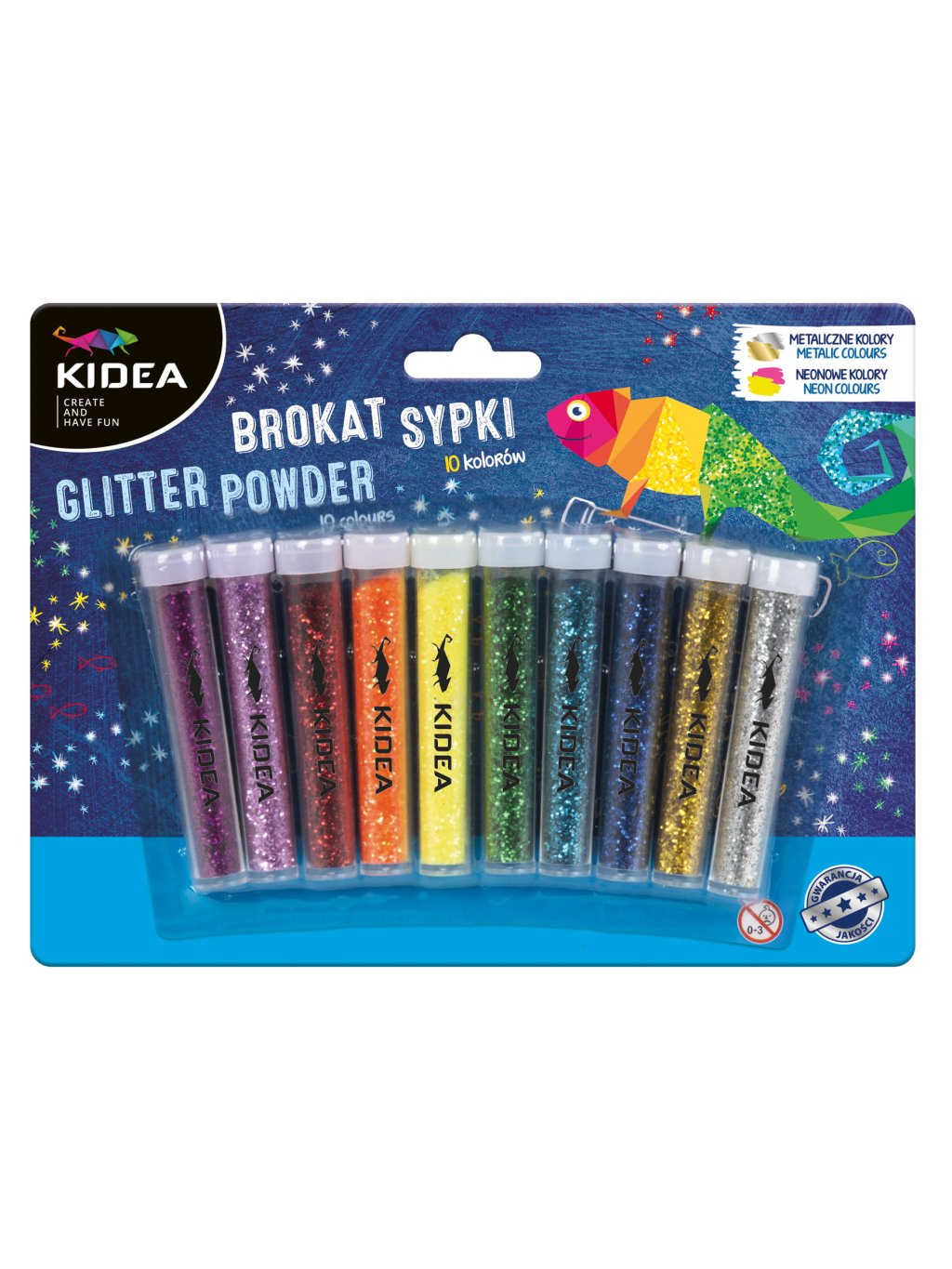 Metalické a neonové třpytky jsou ideální pro zdobení a zdobení výtvarných děl. Každá z až 10 různých barev je v samostatné nádobě, takže se snadno aplikují a skladují.