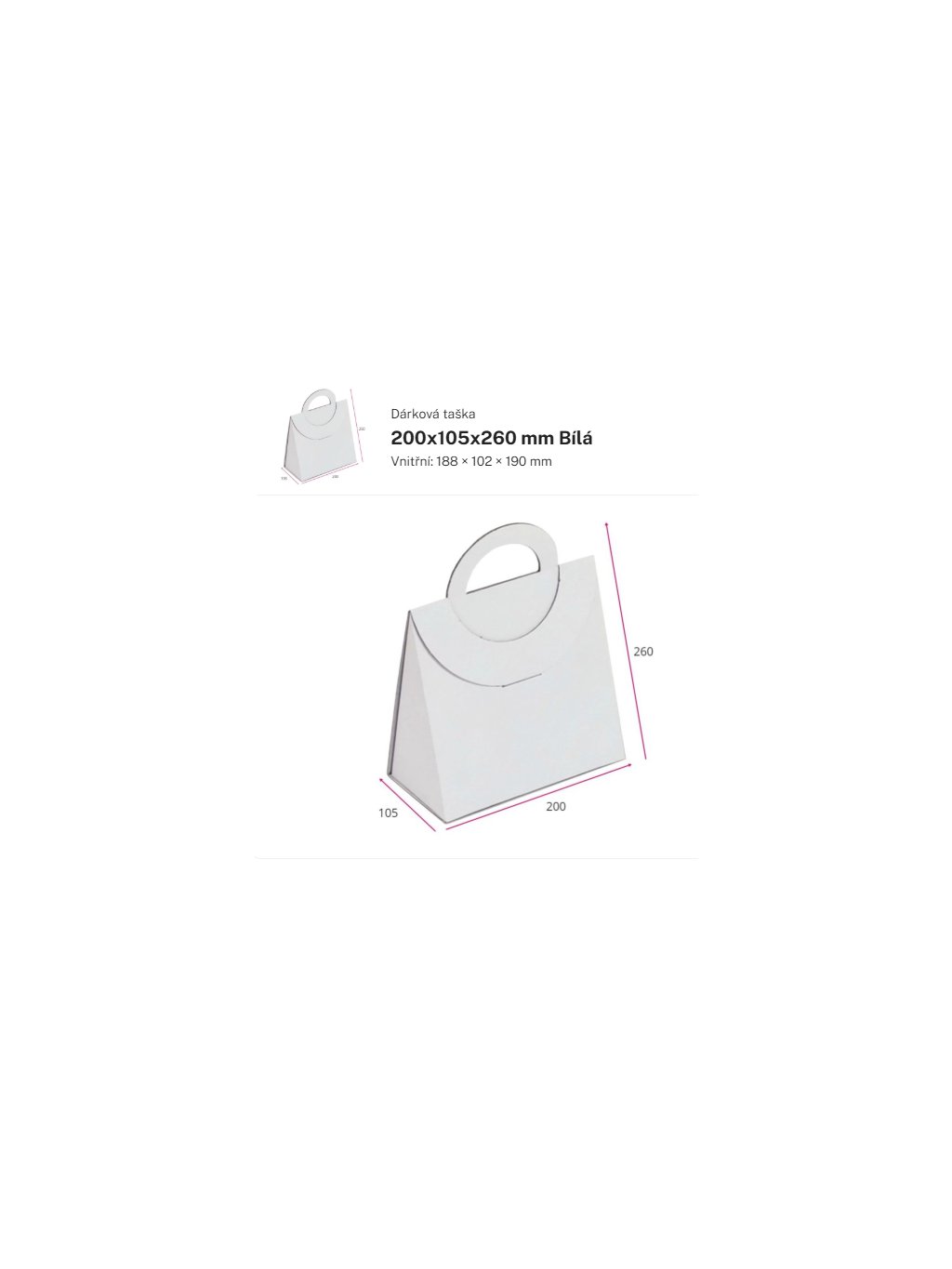 Dárková taška trojúhelníková, BÍLÁ, 20 x 10,5 x 26 cm, 1 kus