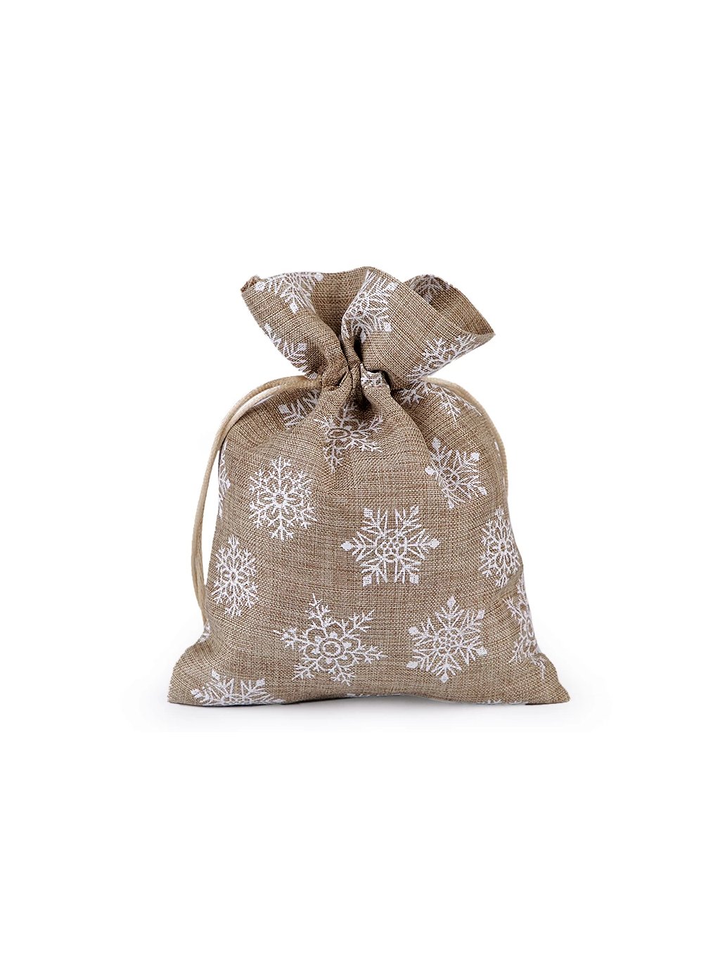 Dárkový pytlík vločky s glitry, PŘÍRODNÍ, 13x18 cm, imitace juty, 1 kus