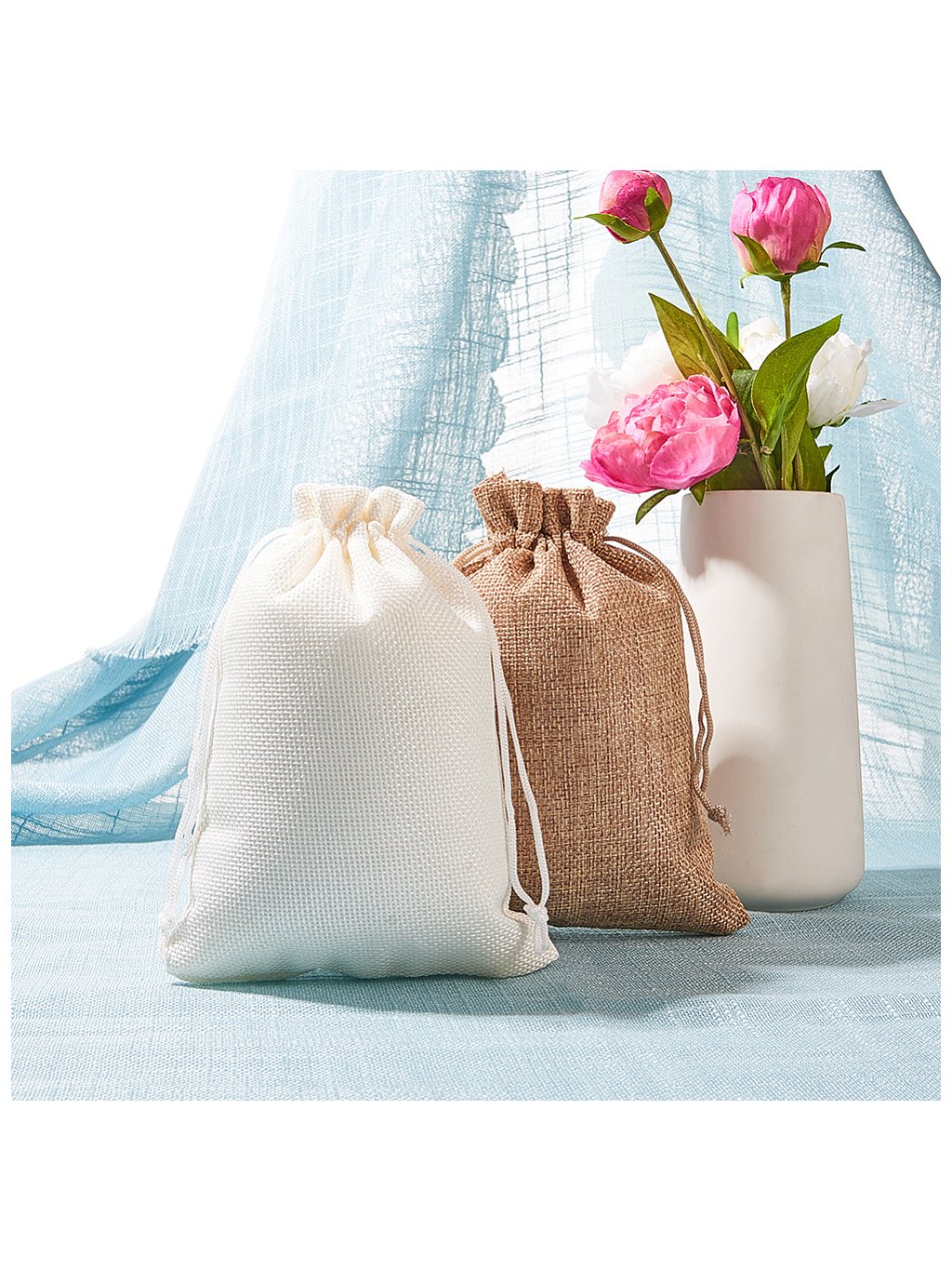 Dárkový pytlík z jutoviny se stahovací šňůrkou, BÍLÁ barva – 13 × 18 cm