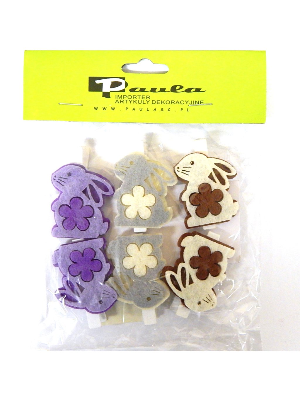 Dekor. kolíčky-filc. ZAJÍC, 6ks, 4,8cm, mix2 (yuan14-34)