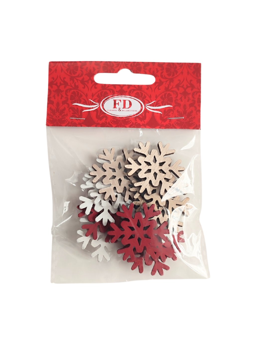 Dekorace, dřevěná, VLOČKY, 3,5 cm, 12ks/bal.