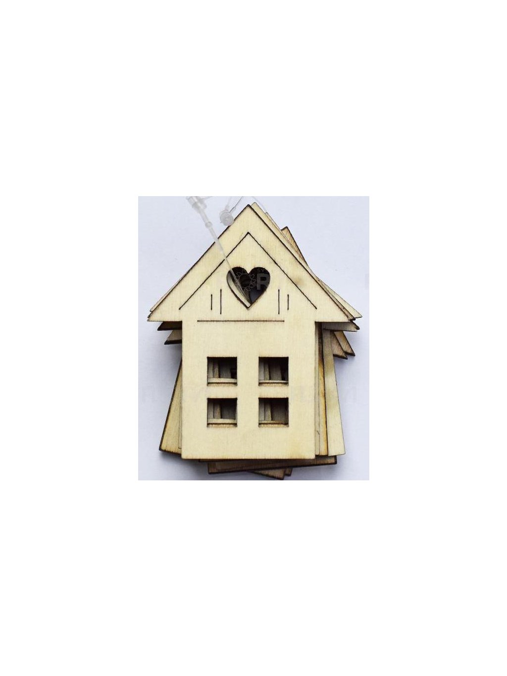 Dekorace, dřevěná, VÝŘEZ DOMEČEK, : 7x5,5cm, 10 ks/bal.
