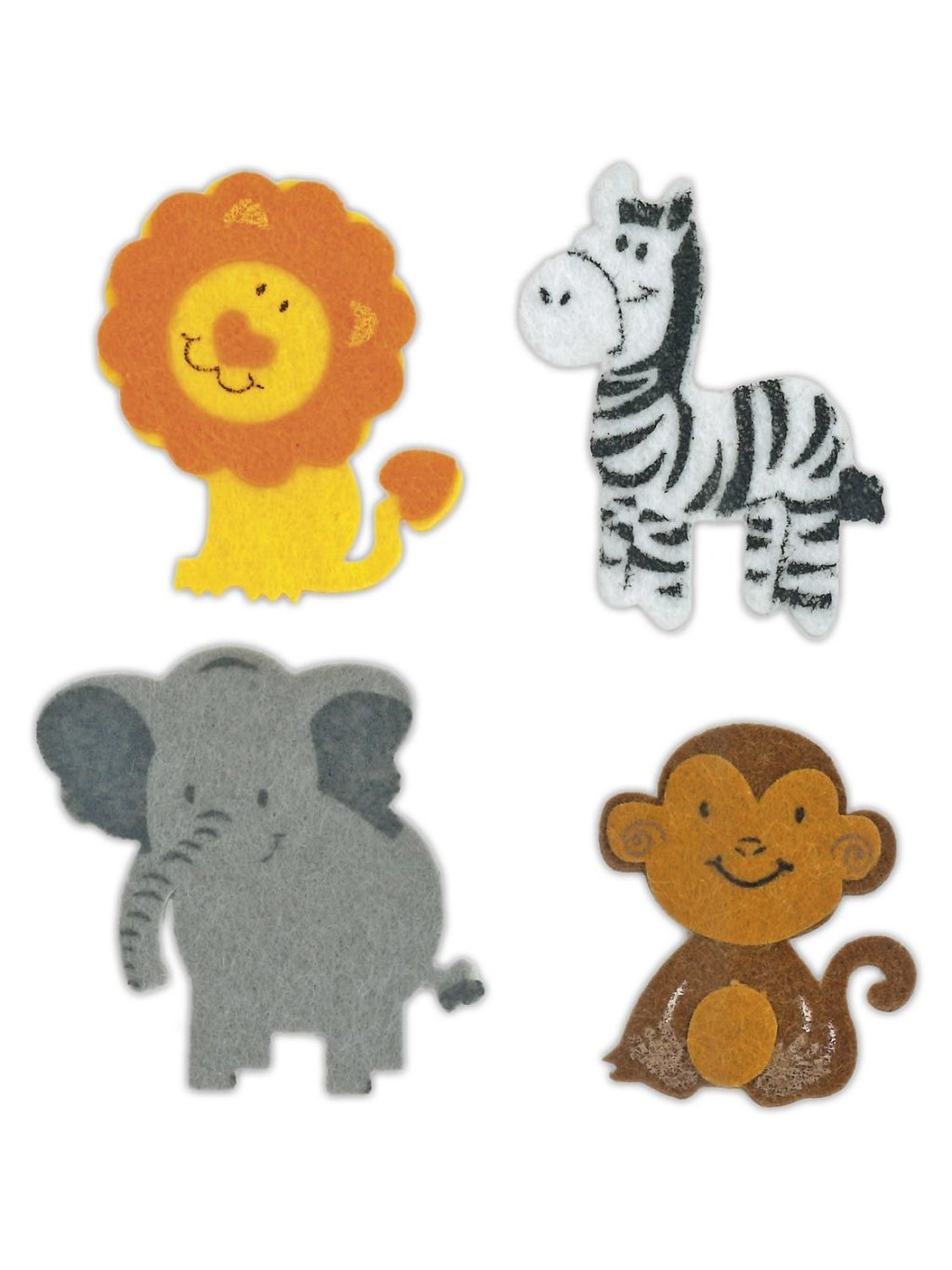 - lev 4,5x5,5 cm, zebra 4,8x5,5 cm, opice 4x4,7 cm, slon 5,5x5,5 cm