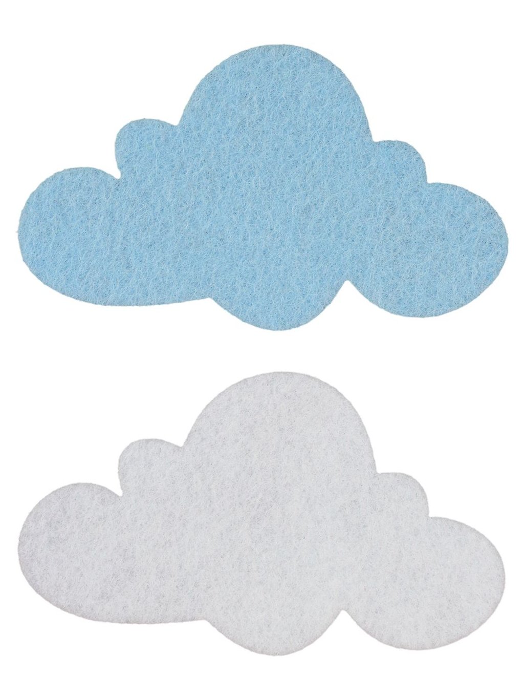 Dekorace, plstěné, OBLAK / mraky, modrá a bílá, 10x5,8 cm, 6ks/bal