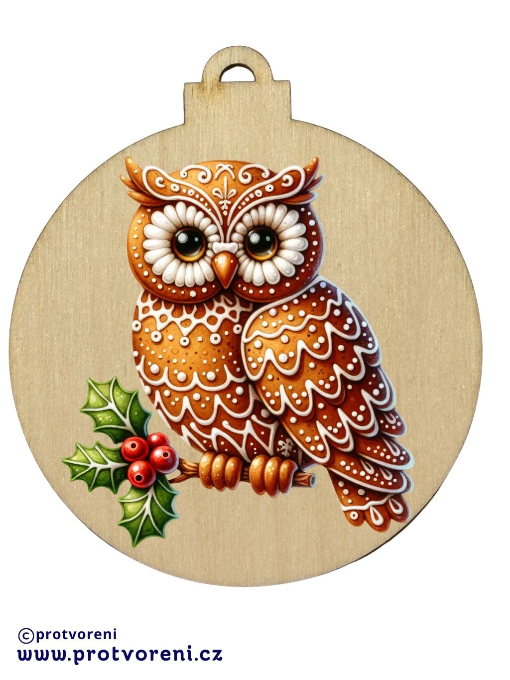 Dekorace, vánoční, Dřevěná dekorace na stromeček z březové překližky, SOVA, 1ks