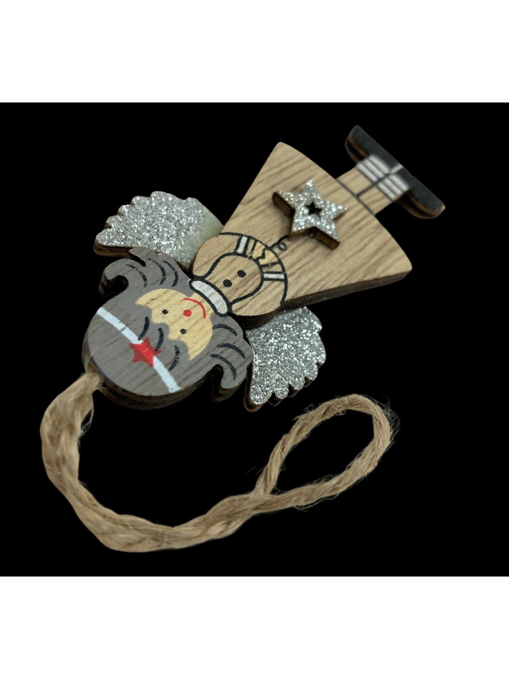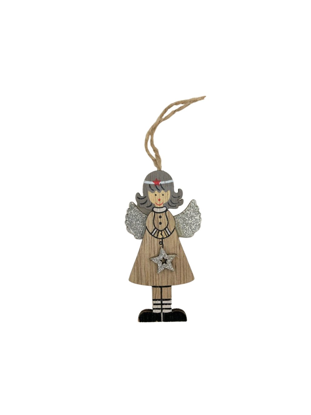 Dekorace, závěs, dřevěná, ANDĚL, stříbrné křídla, 4x8.5cm, 1ks