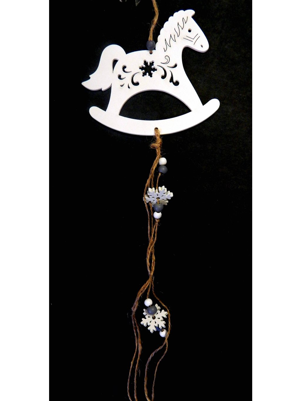 Závěsná dřevěná dekorace - houpací koník bílý.