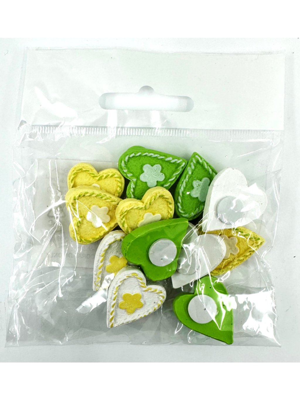 Dekorace samolepící, polyresin. SRDÍČKA, mix barev, 2,8x2,1 cm, 12ks/bal.