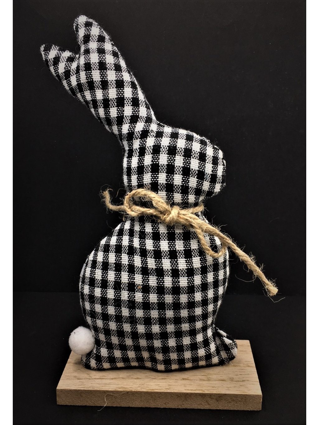 Černobílý kostičkovaný králíček z textilního materiálu. Vhodný na nábytek.