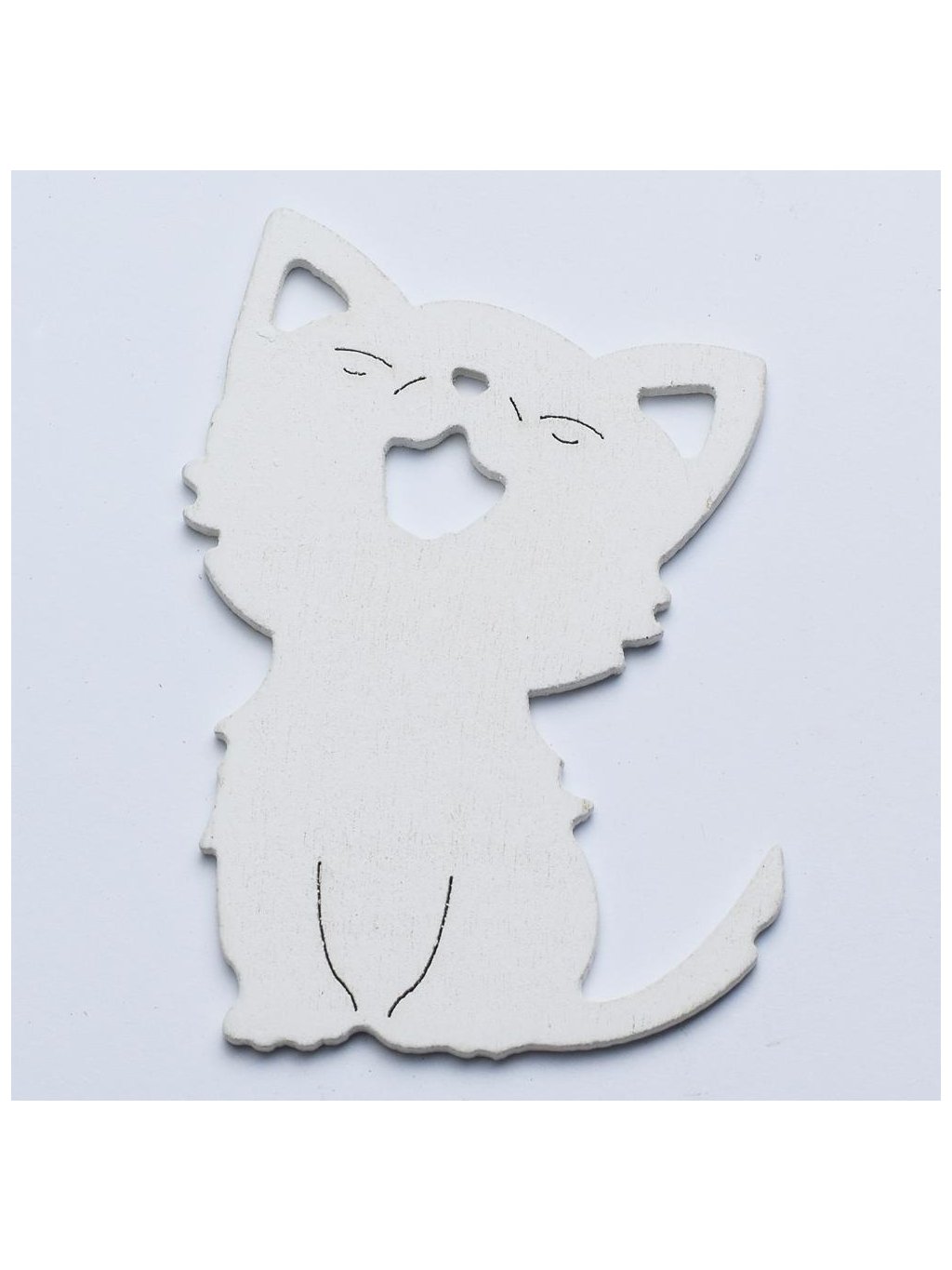 Bílý dekorační výřez ve tvaru kočky o velikosti 8 cm.