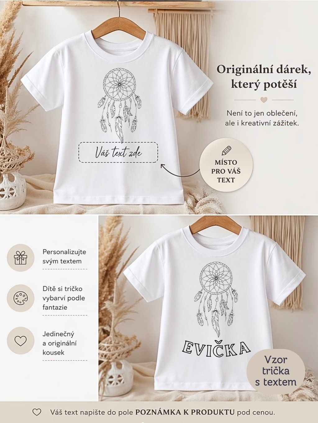 💡 Chcete vytvořit originální dětské tričko se jménem nebo vlastním sloganem? S touto variantou máte možnost si text navrhnout podle sebe.