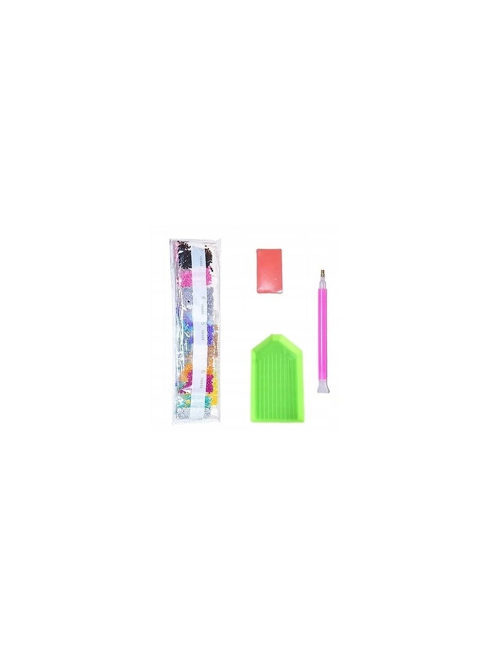 Postup: Obrázek je zakrytý ochrannou folii, kterou sundávejte vždy postupně, tak jak budete aplikovat kamínky. Při sundání celé folie najednou hrozí, že se ztratí viskozita lepidla a kamínky nebudou držet. Plátno obsahuje označení, která jsou umístěna i na sáčcích s kamínky. Podle označení, víte kam který kamínek patří. Nejprve si do hrotu tužky naberete vosk, díky kterému se kamínky snadno přichytí na pero. Kamínky perem aplikujete na obrázek.