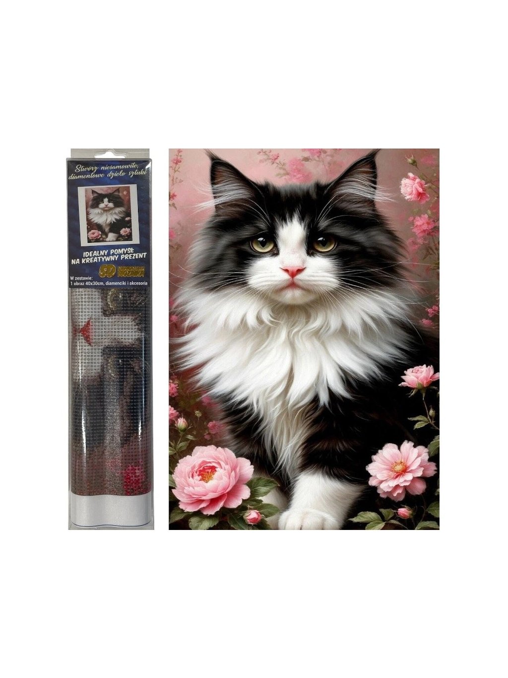 Diamantový obrázek, ČERNOBÍLÁ KOČKA, 30 x 40 cm, 1 bal.