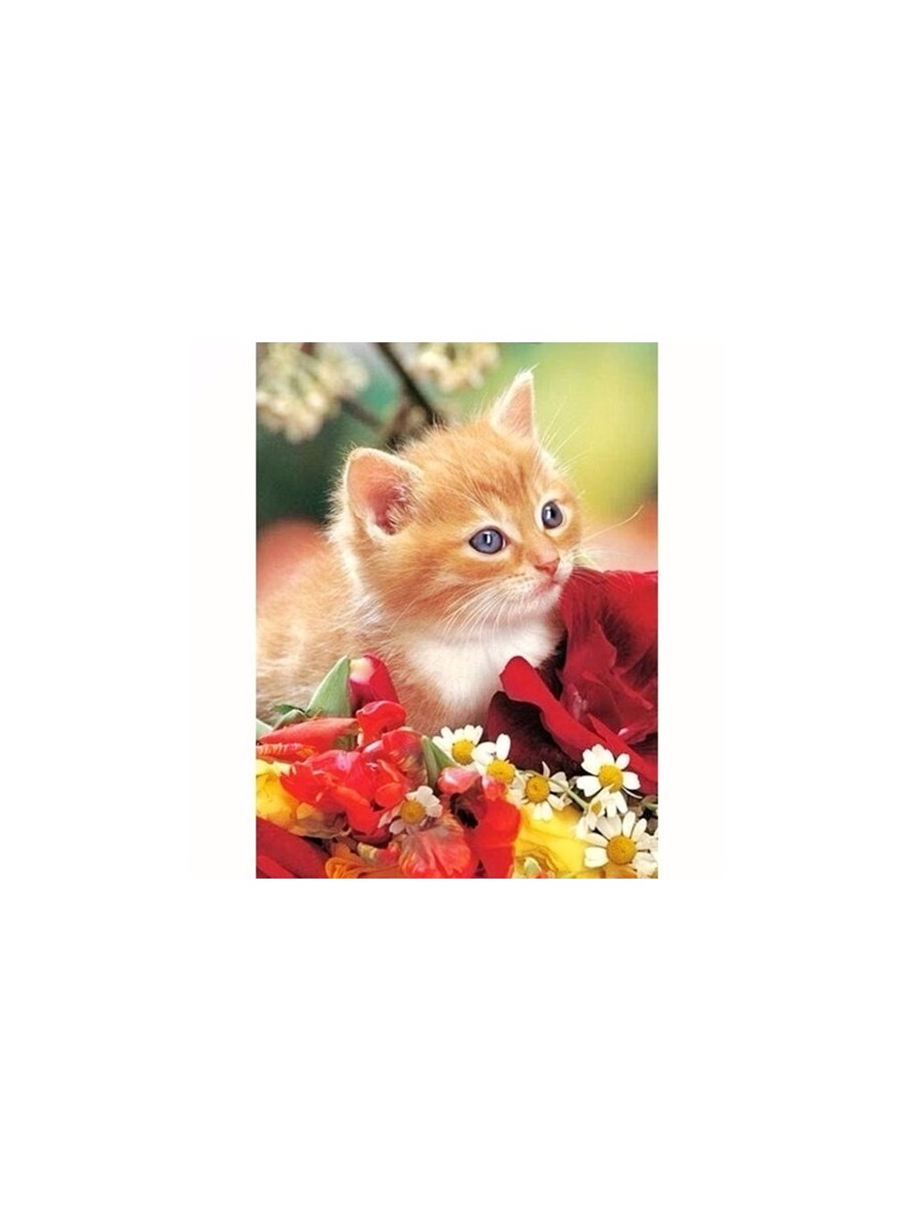 Diamantový obrázek, KOČIČKA mezi kytkama, 40x30 cm, sada