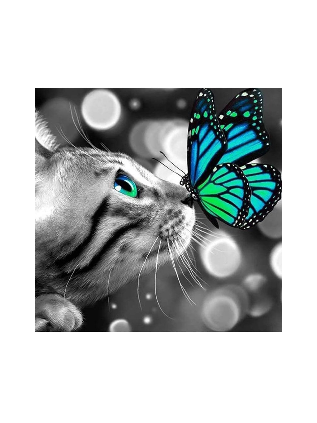 Diamantový obrázek - kočka s motýlkem