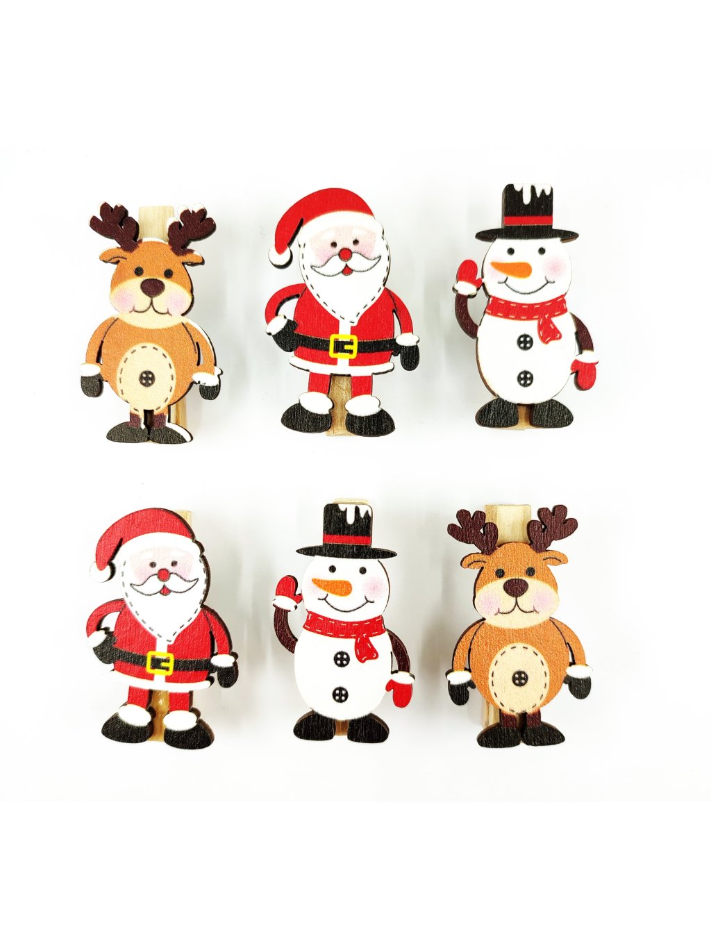 Dřev. kolíčky, SANTA, SOB, SNĚHULÁK, 4,5 cm, 6ks/bal.