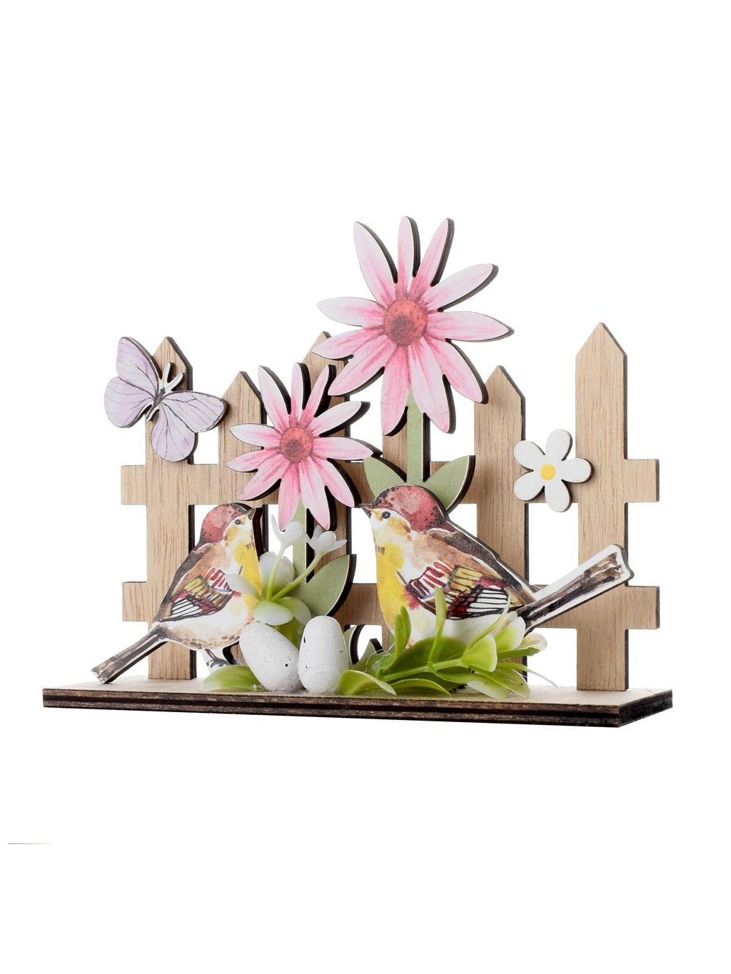 Dřevěná dekorace, PTÁČCI NA ZAHRADĚ, 14x5x11 cm, 1 kus