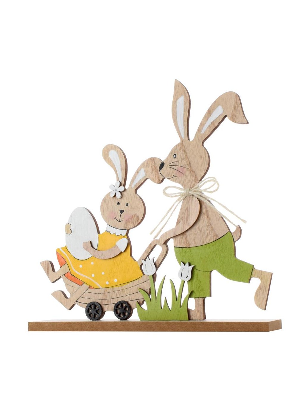 Dřevěná dekorace, ZAJÍČCI, 24x4,5x24 cm, 1ks