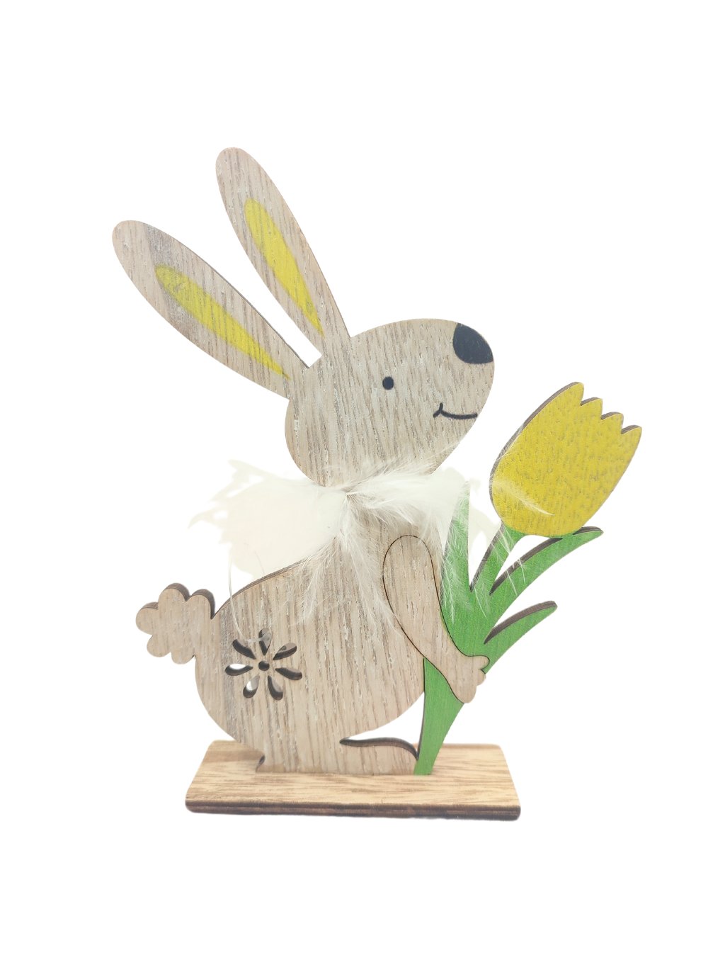 Dřevěná dekorace, ZAJÍČEK S TULIPÁNEM, 12x3x15,5 cm, 1 kus