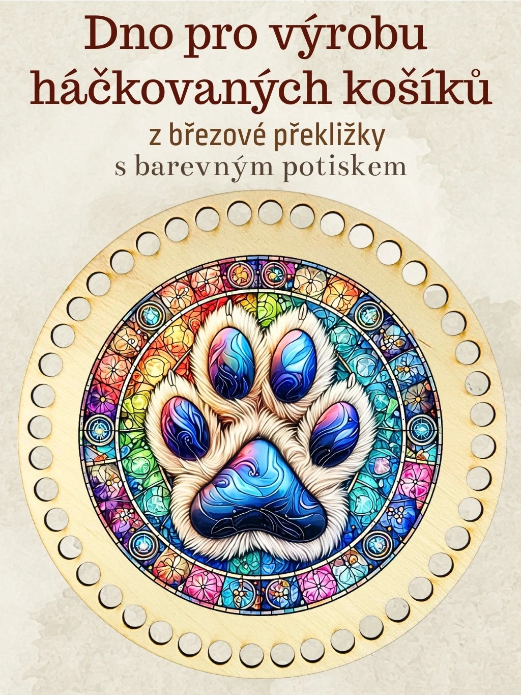 Dřevěné dno na košík, MANDALA- PSÍ TLAPKA, 1 kus
