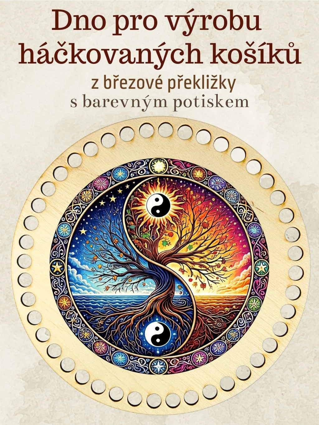 Dřevěné dno na košík, MANDALA- STROM - YIN YANG, 1 kus
