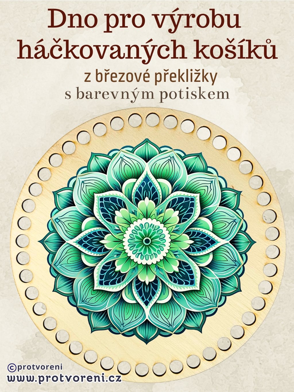 Dřevěné dno na košík, MANDALA zelená, 1 kus