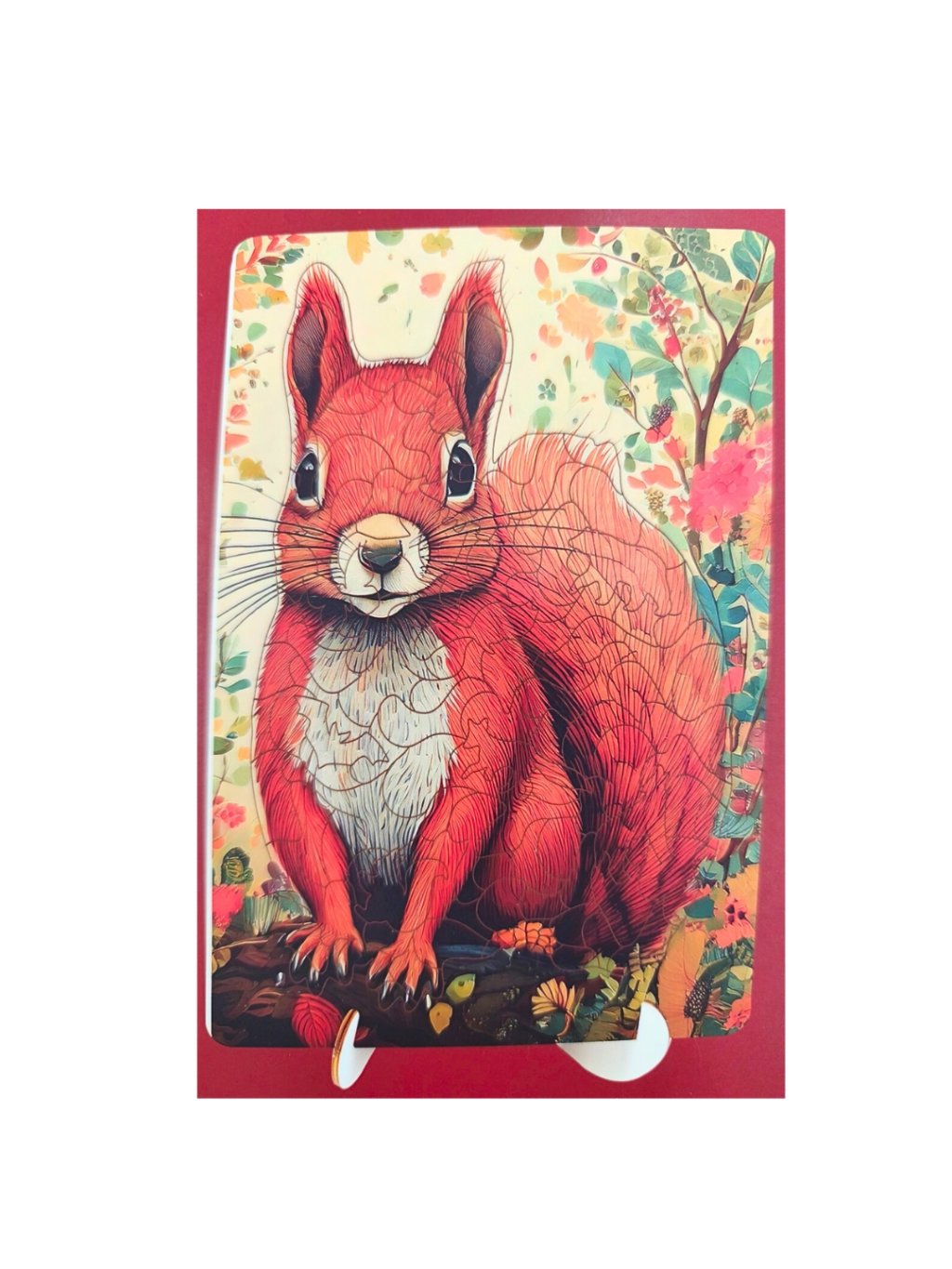 Nádherné dřevěné puzzle s motivem veverky v pestrém květinovém designu potěší děti i dospělé milovníky skládání. Detailní ilustrace plná barev vytváří po složení skutečně působivý obraz.