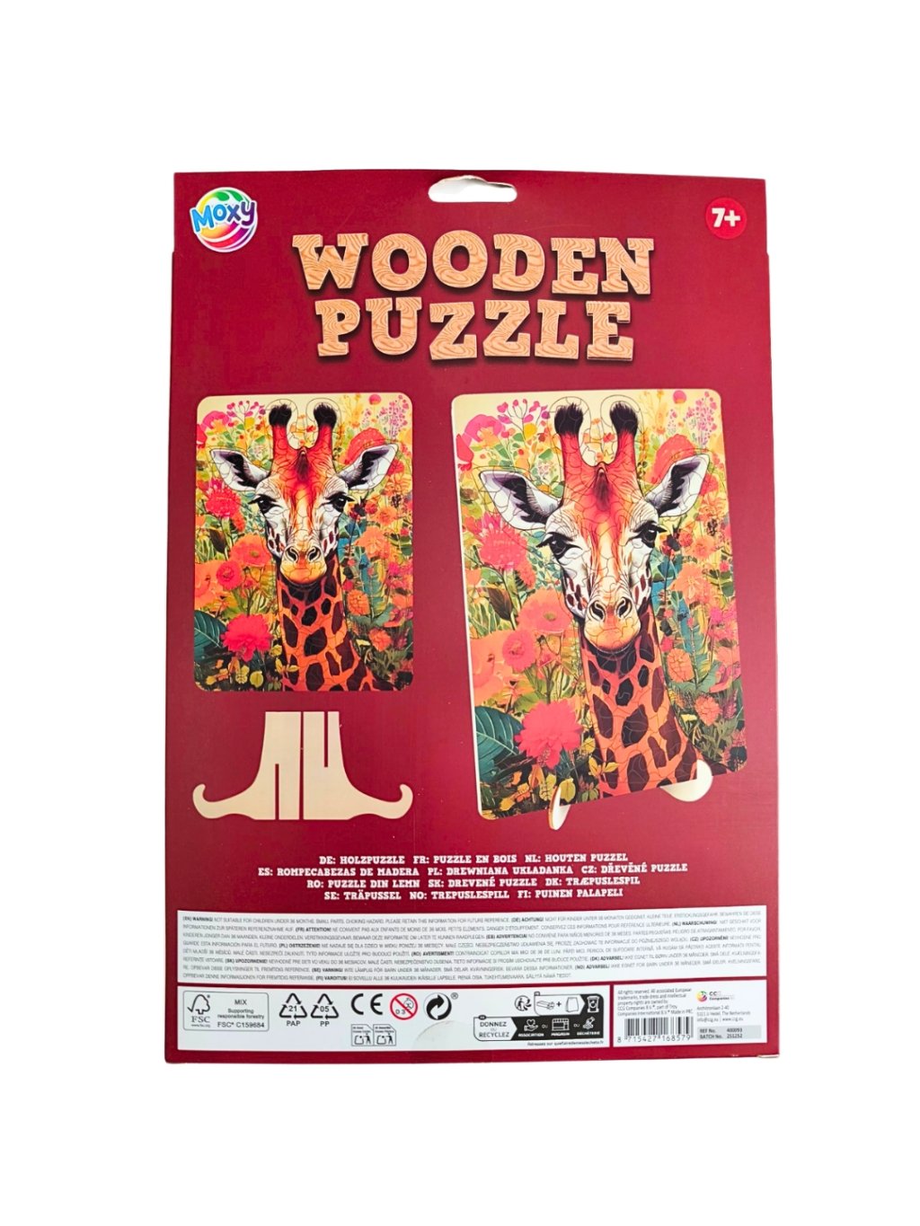 Nádherné dřevěné puzzle s motivem žirafy v pestrém květinovém designu potěší děti i dospělé milovníky skládání. Detailní ilustrace plná barev vytváří po složení skutečně působivý obraz.