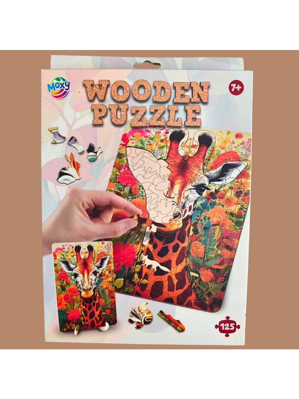 Originální dřevěné puzzle s motivem žirafy, 125 dílků. Barevný detailní obrázek. Vhodné pro děti od 7 let i dospělé.