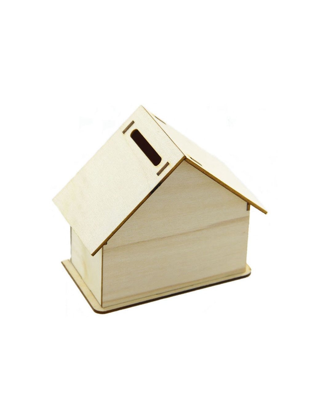 Dřevěný domeček, skládačka, POKLADNIČKA, 10,5x5,5x10 cm, 1 sada