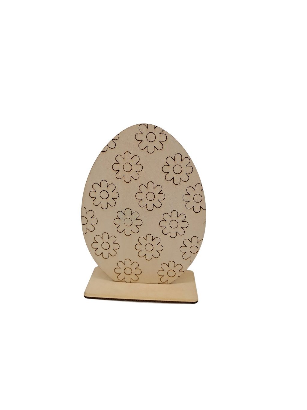 Dřevěný výřez, VAJÍČKO S KYTIČKAMI, se stojánkem, 14 x 10,7 cm, 1 kus