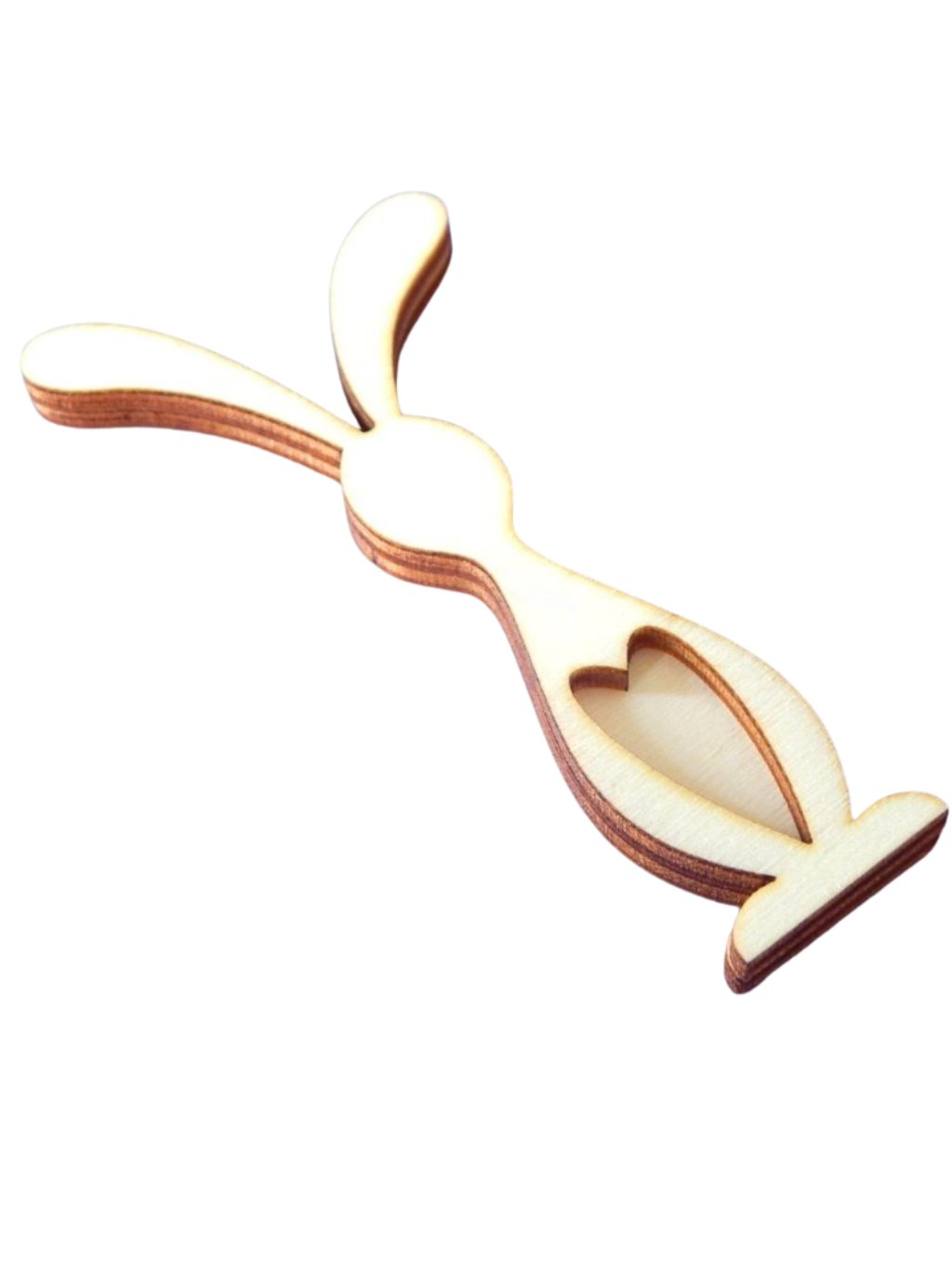 Dřevěný výřez z překližky, 3D ZAJÍČEK SE SRDCEM, 9x4,7cm, 2ks/sada