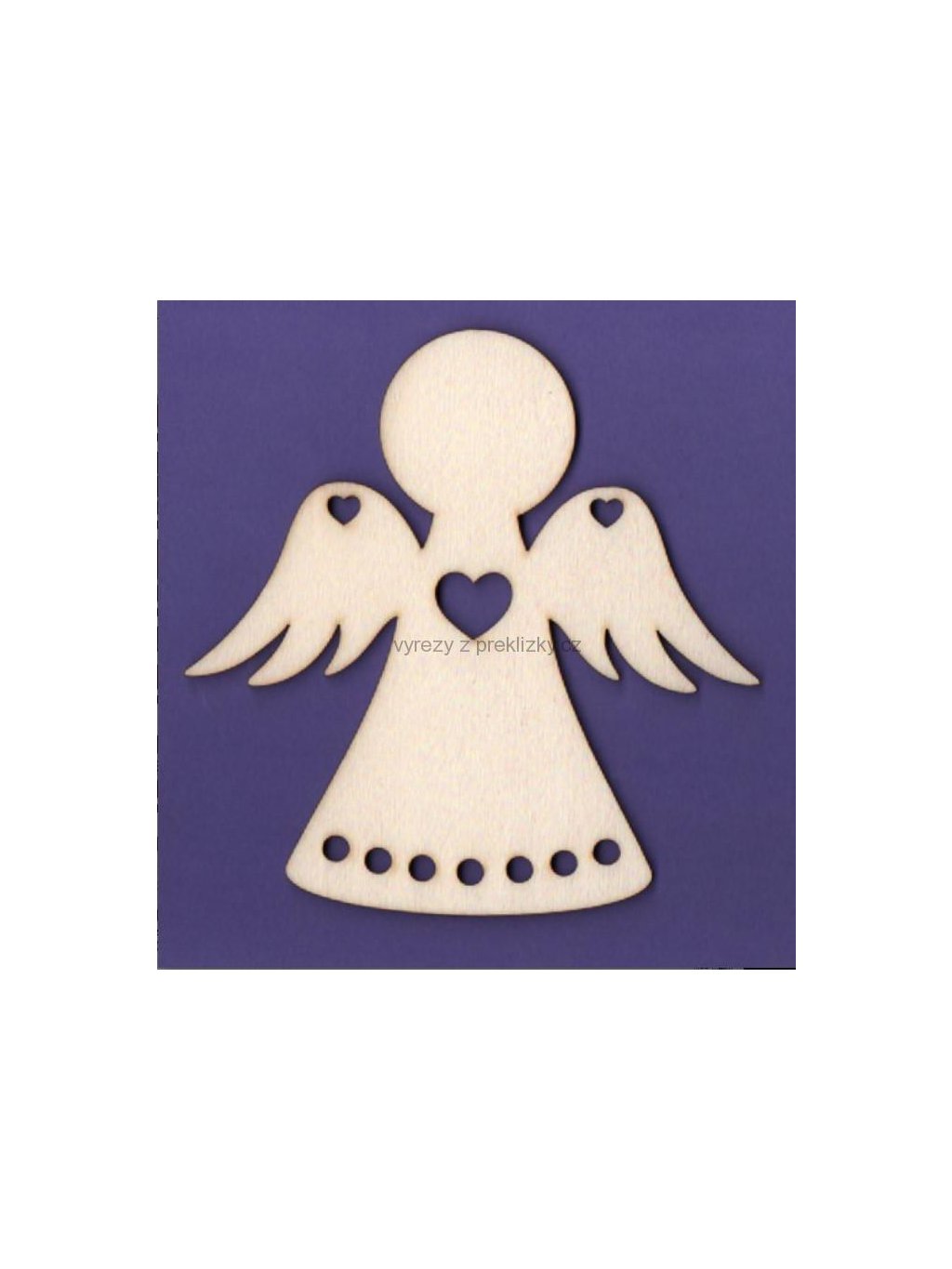 Dřevěný výřez z překližky, Andělíček na vyplétání, se srdíčky, MALÝ, cca 9,5 x 9,4 cm, 1ks