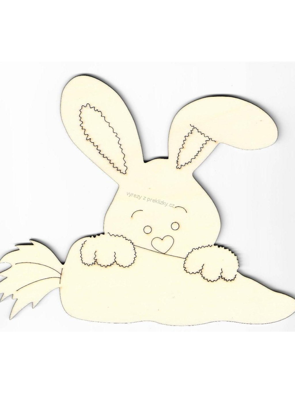 Dřevěný výřez z překližky, CEDULKA-KRÁLÍK S MRKVÍ, 18,5x15cm, 1ks