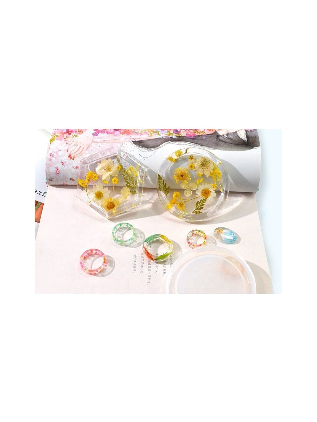 - do pryskyřice lze přidávat dekorační materiály - glitry, sušené květiny a dekorační plátky