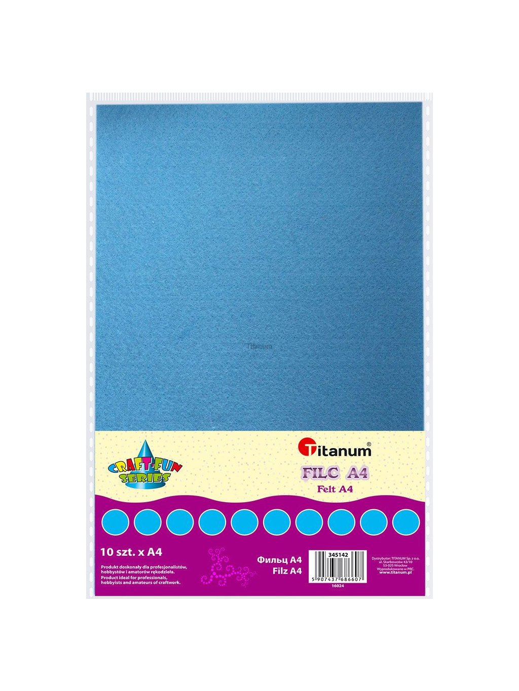 Filc má velikost A4 (210x297 mm). Cena je za 1 balení obsahující 10 ks. Gramáž 200g.