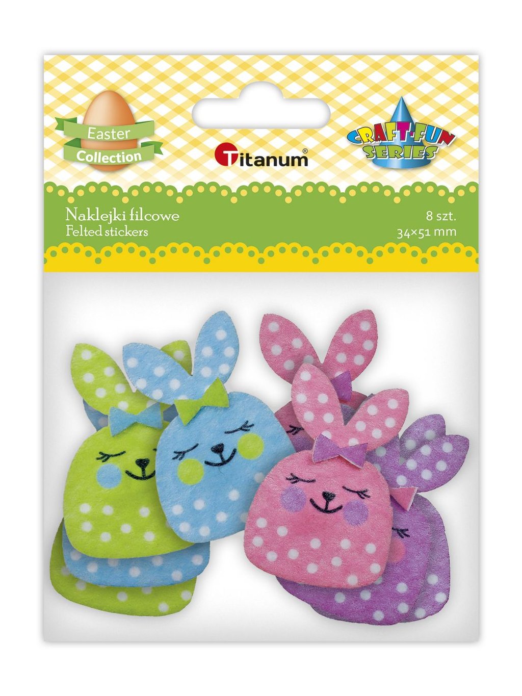 Plstěné 3D samolepky - zajíčci v pastelových barvách. Balení obsahuje 8 ks.