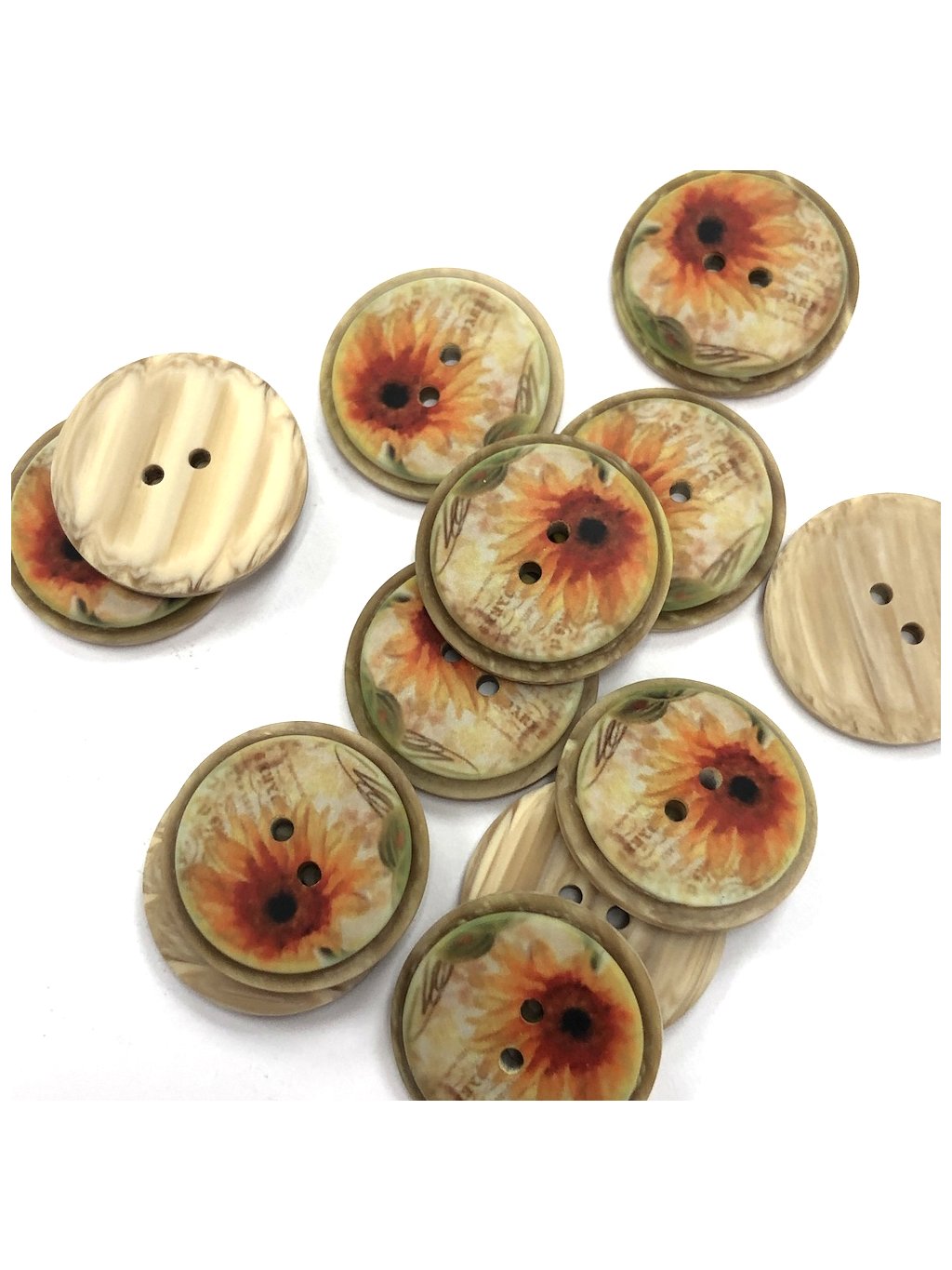 gu276, Plastový knoflík, potisk slunečnice, 25 mm / 1 kus