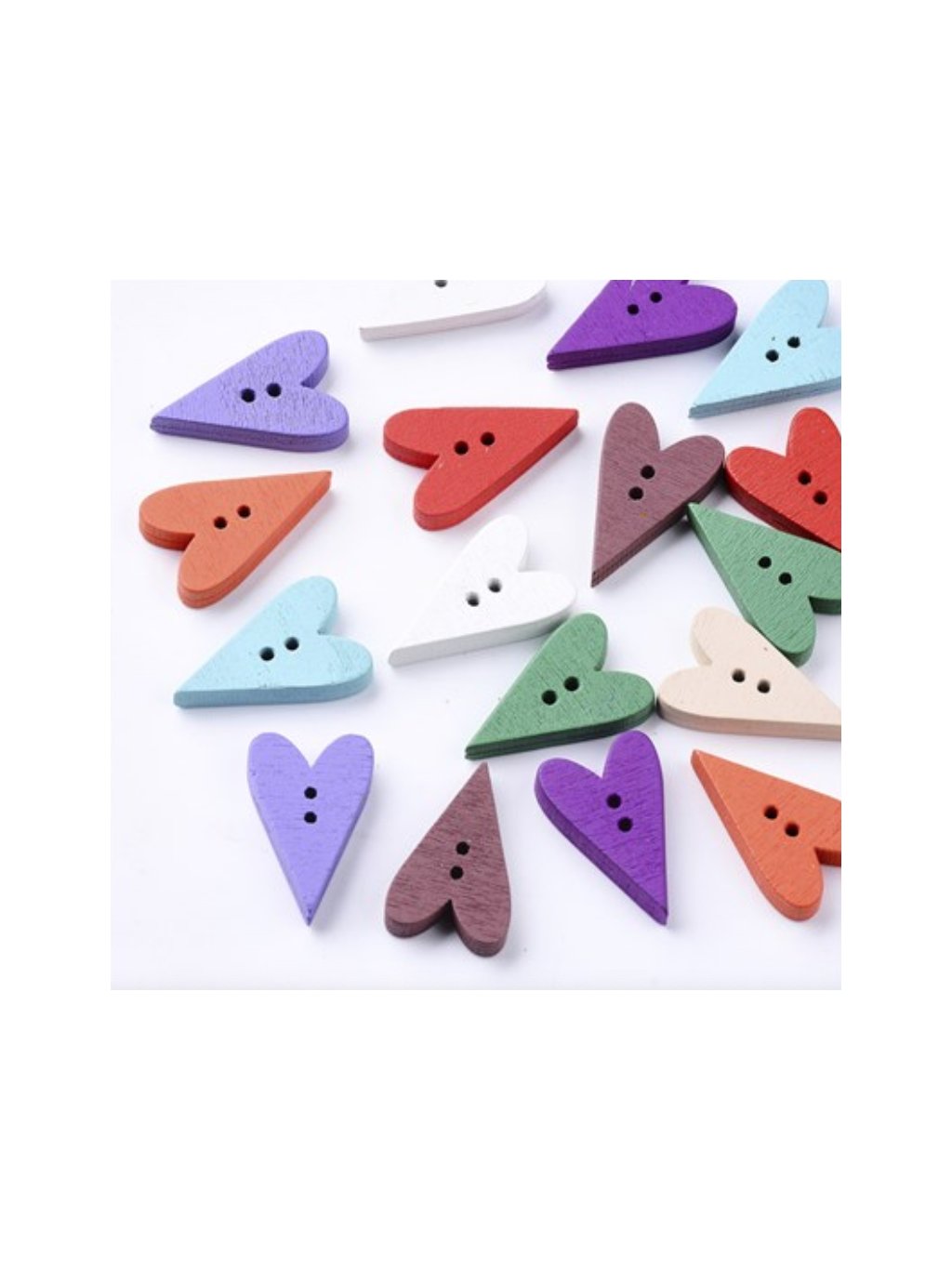 GU535, Knoflíky, dřevěné srdíčka, mix barev, 23,5x15x4 mm / 1 kus