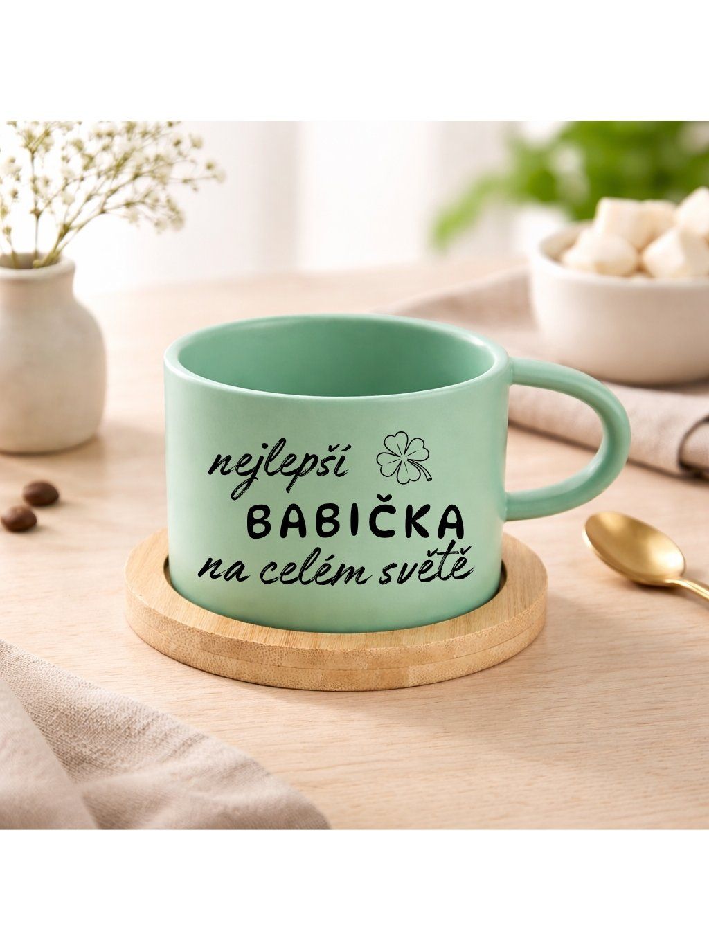 Hrneček Makronka s bambusovým podšálkem – stylový doplněk pro vaše chvíle pohody