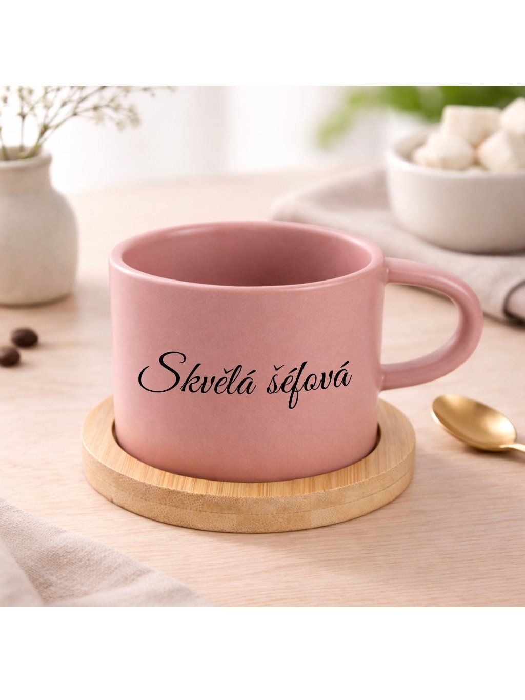 Hrneček Makronka s bambusovým podšálkem – stylový doplněk pro vaše chvíle pohody